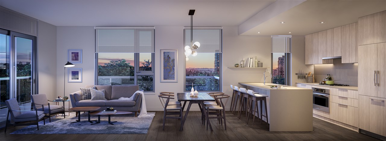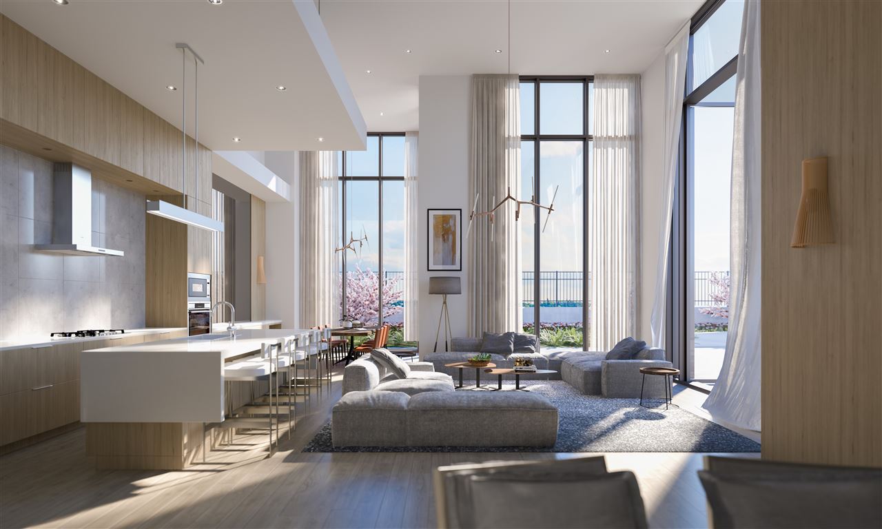 This sub-penthouse offers a 3-bedroom and den open-concept layout designed to complement your dynamic lifestyle. The kitchen features sleek integrated appliances and a large island with a waterfall-style stone countertop to inspire the chef in you! A large roof terrace and separate balcony extend your living space, creating a 532 sq ft outdoor retreat that is not included in the finished floor area. The large master suite is tucked away from the living areas for added privacy and includes a luxurious ensuite with a his-and-hers vanity and the custom Amacon walk-in closet. Homeowners will appreciate the full-laundry room, 2 parking stalls and bike storage locker come included with this home.