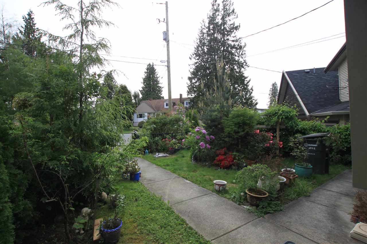 Well kept 1/2 Duplex. Quiet street. Cul-de-sac. Total 3 bedrooms up with 2 full baths, mountain views from covered sundeck. 2 bedroom suite with 1 full bath and separate entrance on ground. Bright main kitchen with maple cabinets, granite countertops. 2 pc bath for guest use. Hot water radiant heat flooring. Tiled roof. Single detached garage off the lane. Minutes to Metrotown Mall, Highgate Village Shopping centre. Close to bus, schools & easy access to highways. Very convenient location! All measurements approx. Buyer to verify. Burnaby Central high, Lakewiew Elementary and Armstrong (Late French Immersion)Elementary schools catchment.
