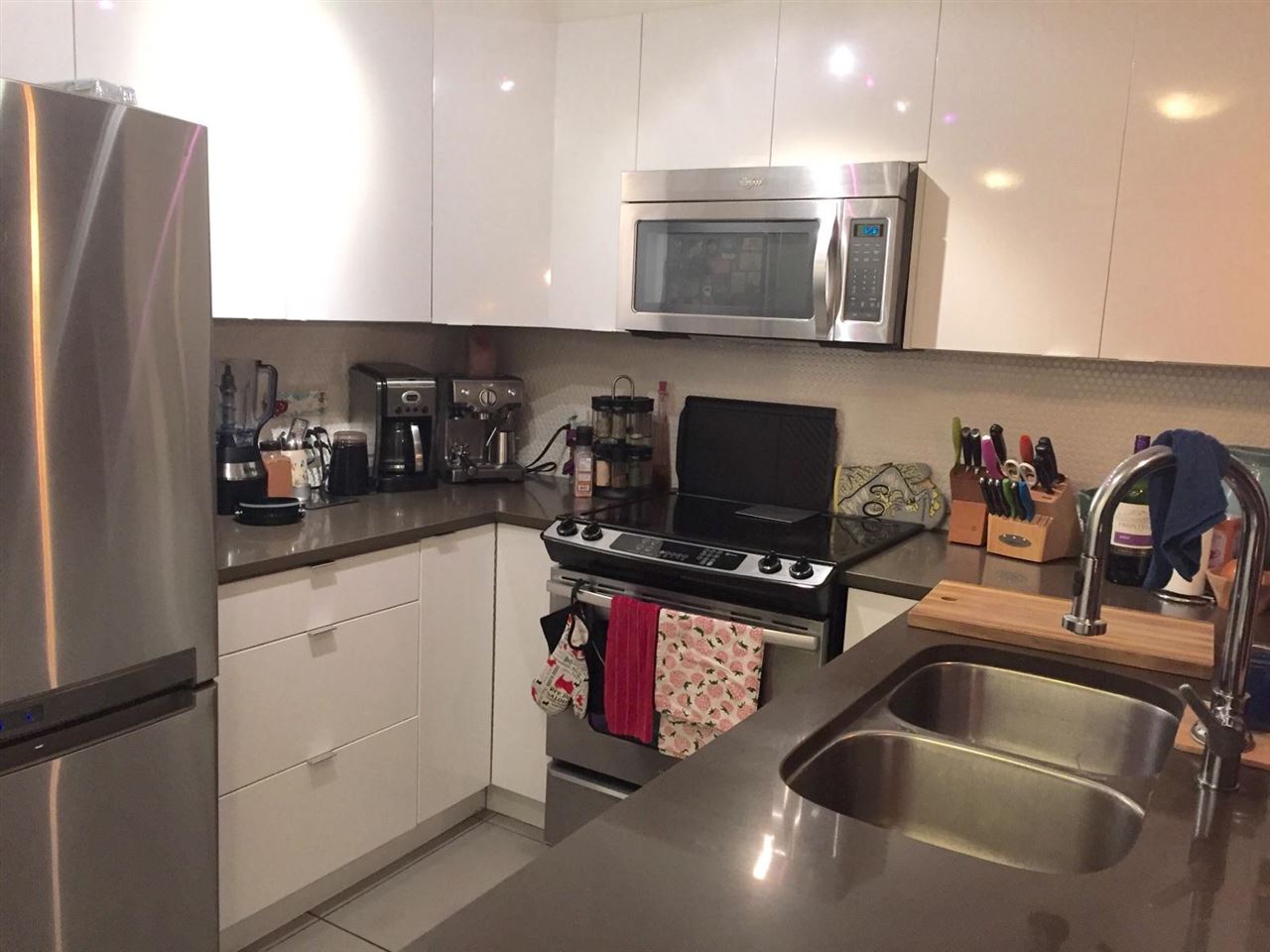 TRIO PRIME VICTORIA LOCATION. LIGHT AND BRIGHT ONE BEDRM, ONE BTHRM. NICE LAYOUT WITH SPACIOUS LIVING ROOM AND DINING AREA. HARDWOOD FLOOR, IN-SUITE LAUNDRY, KITCHEN WITH STAINLESS STEEL APPLIANCES, QUARTZ COUNTER TOPS. LARGE BALCONY, WALKING DISTANCE TO SHOPS, RESTAURANTS, SCHOOL, PARKS & TRANSPORTATION. MINUTES DRIVE TO DOWNTOWN. ONE PARKING AND STORAGE .