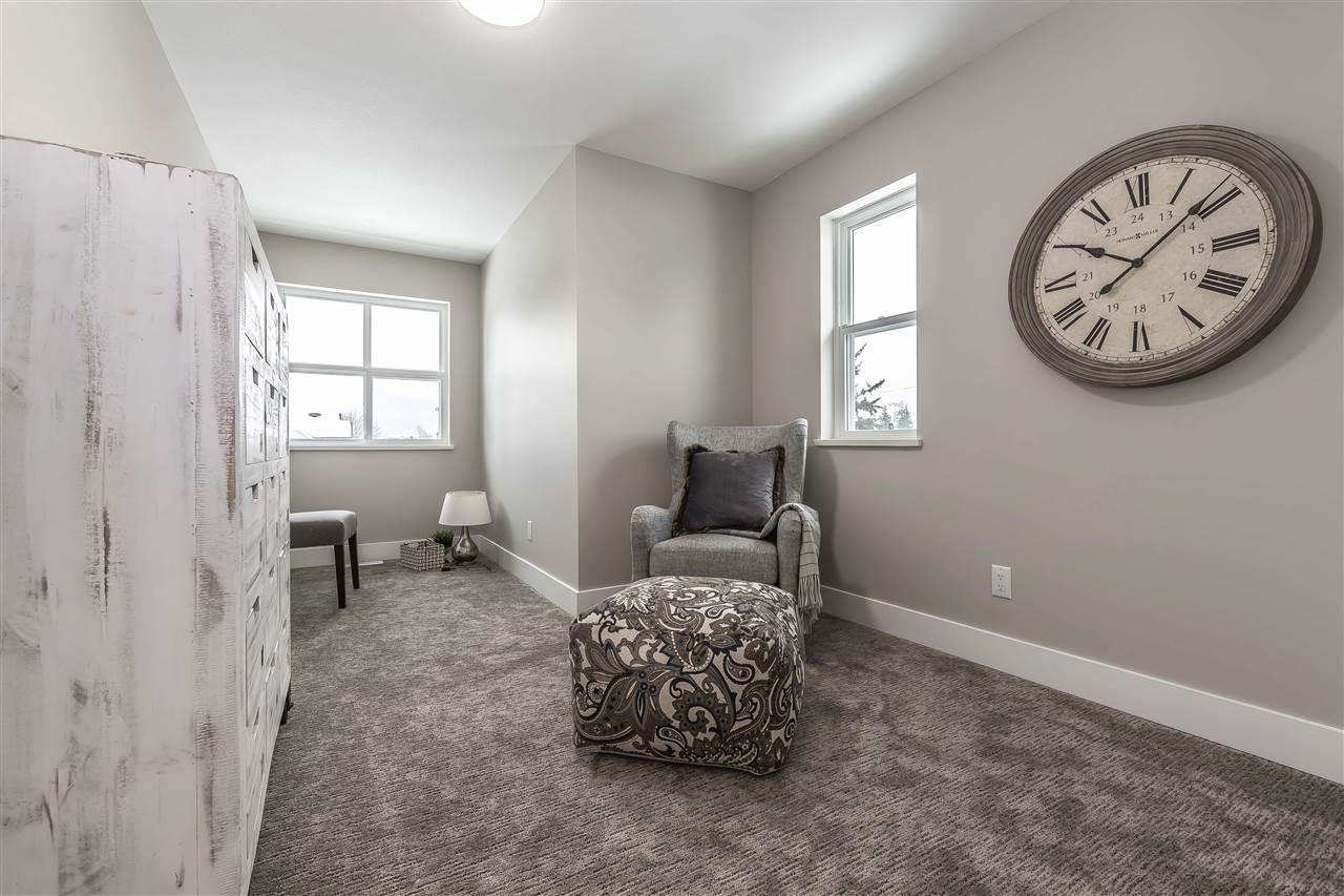 One of the nicest townhome complexes on the market today! 11 units in total make this a quiet and cozy place to live. All units are complete with high end finishing, full stainless steel appliance package and modern color choices. Hardy plank siding, 9' ceilings on first and main floors, community garden and childrens park private in complex. West side of Chilliwack located near Prospera centre, hospital, Leisure centre, Arts Centre, and shopping. Options for Built in vac, Central air conditioning, and Barbeque box.