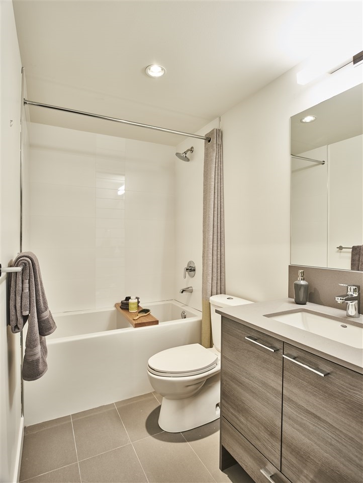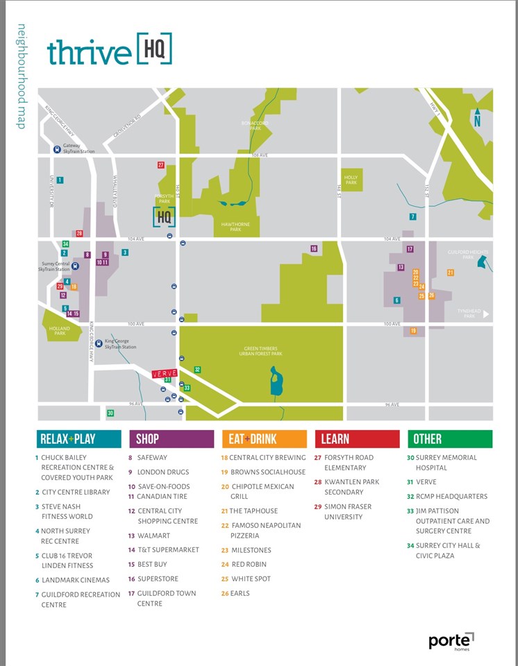 Assignment of Contract. Perfect starter home or investment property! This spacious 702 SF 1 bedroom PLUS den unit facing the courtyard at HQ - Dwell, in the heart of Surrey City Centre. Open concept interior featuring 9 FT ceilings, wide plank laminate flooring, gourmet kitchen with Caesarstone quartz countertops, soft-close cabinetry, Carrera tile back-splash & full size appliances. First class amenities include a garden with outdoor BBQ, a lounge, games room, fitness centre and yoga studio. 1 parking stall & 1 locker. Conveniently located close to all amenities including SkyTrain, Hawthorne Park, shopping, restaurants, schools and Hwy 1.