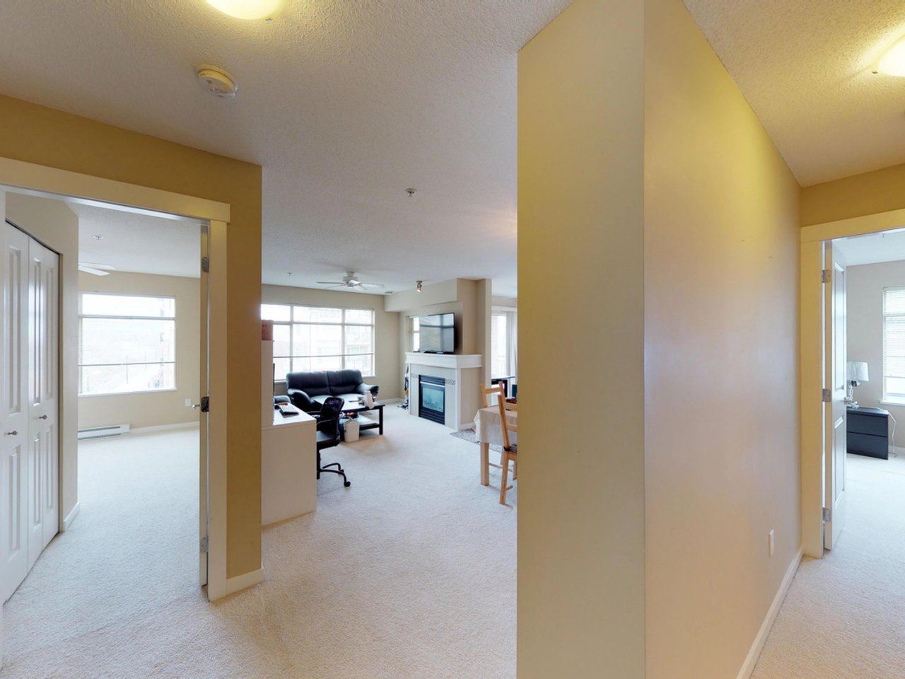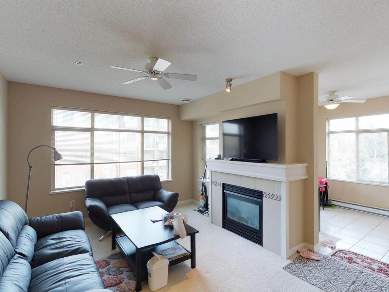LOVELY CORNER UNIT, with beautiful layout!! Meridian Gate by Polygon, Highly Desirable ! NE CORNER unit, well kept, Bright spacious 3 BEDROOM condo features 1198 SQ.FT., 2 FULL BATHS, Stainless Steel Appliances, Gas Fireplace, Large Covered Balcony. Excellent managed overall complex with resort like clubhouse including indoor pool, Gym, Theatre room, Meeting Room, Garden. Pets allowed with restrictions, Rental allowed. Central Location with walking distance to Walmart and many other stores, public transport, Tomsett Elementary School. All size and measurements are approximate and need to be verified by the buyer or buyers agent if deemed important.
