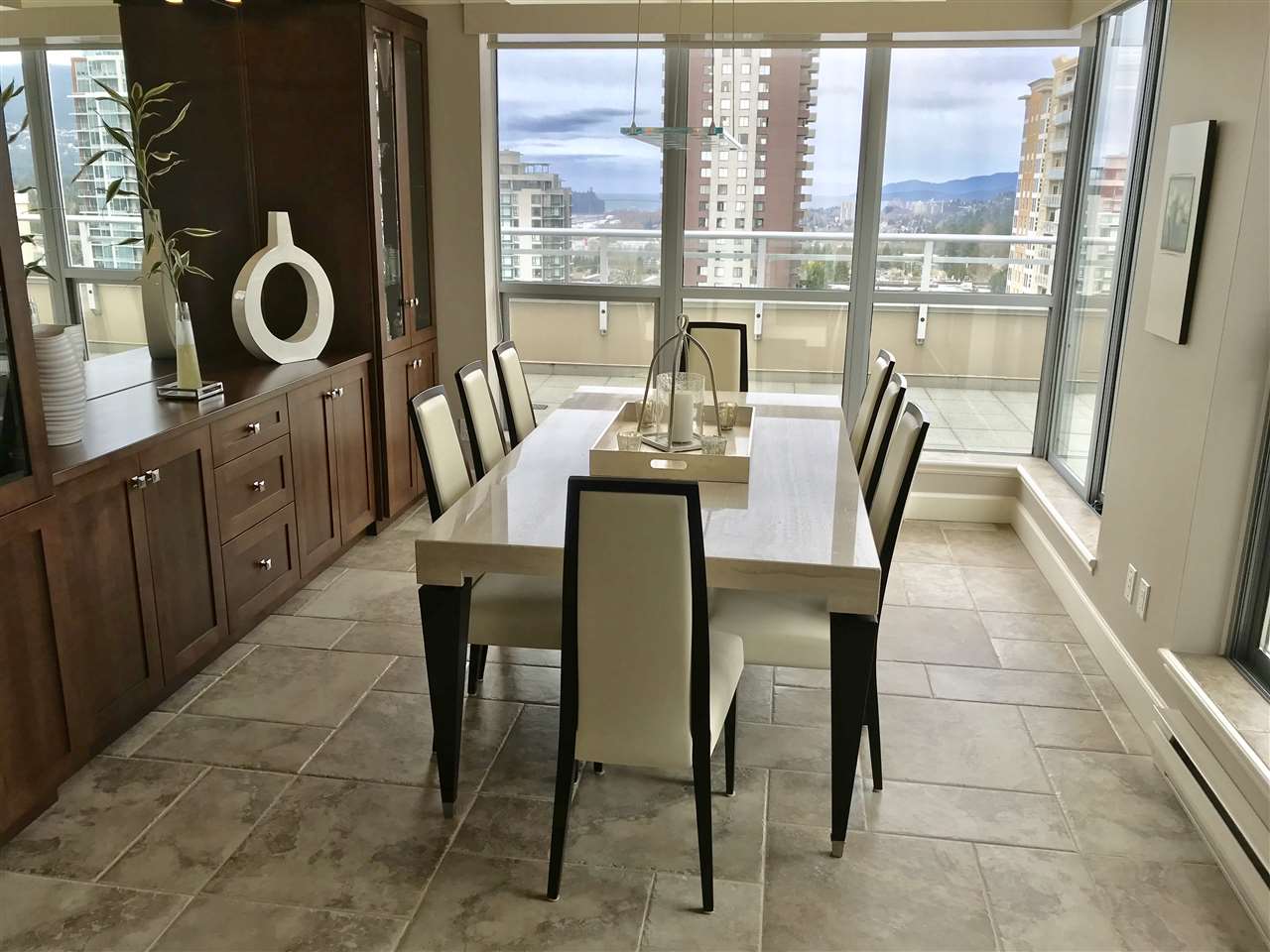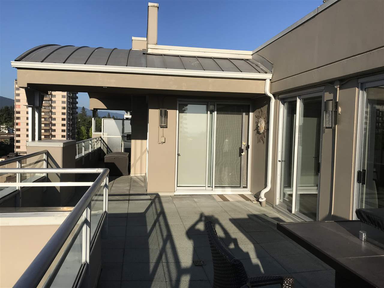 LUXURY PENTHOUSE... Boutique building (Piermont). Open floor plan with huge Gourmet Kitchen with gas cook top/top of the line appliances. Open floor plan with flr to ceiling windows occupying 1/3 of the top floor. Walk in closet in Master bdrm. Approx 800 s/f of patio surrounding the unit with CITY, WATER. MOUNTAIN VIEWS. Ideal for retires.. Must be seen to be appreciated. Great Location with Whole Foods, Lions Gate Hosp, restaurants and transportation at your door step. No rentals, pet friendly. Tasteful decor ...ONE OF A KIND. Building has a reputation of one of the nice well kept building in the area...located on the nice treed street on Central Lonsdale.