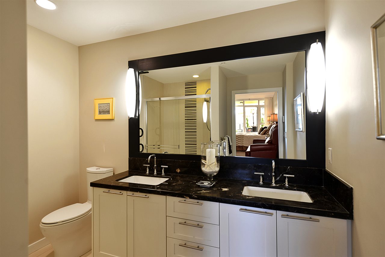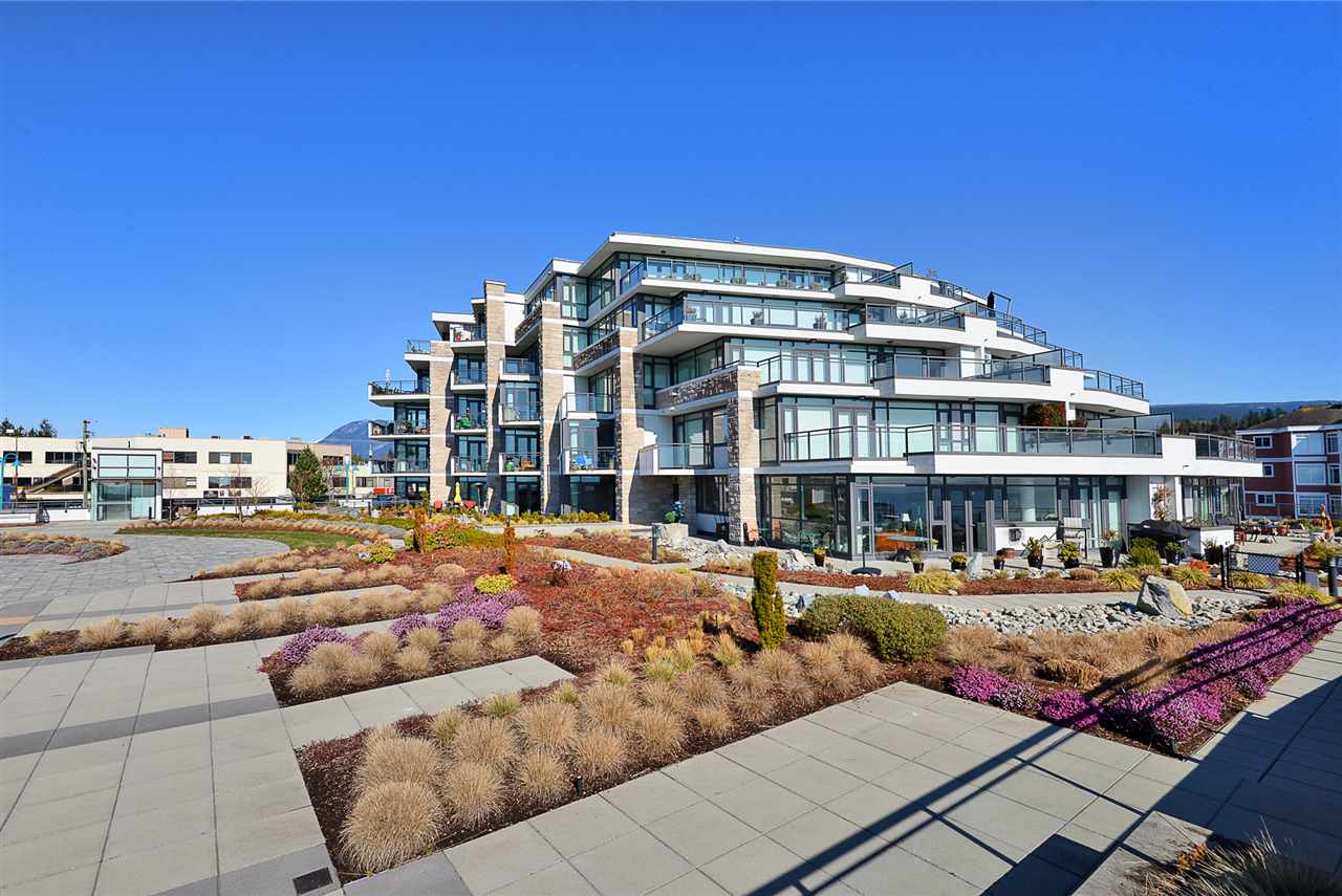 Experience the benefits of oceanfront living in this 2 bed plus den, 2 bath, 1,120 sq ft condo located within easy walking distance to downtown Sechelt. Enjoy the ocean view and sunsets from the western exposure this unit offers. Living on the second floor offers a generous patio and easy access to the common courtyard which leads to the seawall walk, as well as an elevator from garden to street level. Once inside, you will appreciate the hardwood floors, custom gas fireplace, lots of windows and 9’ ceilings in the master bedroom and living room which bring in natural light. The modern open plan kitchen includes granite countertops and stainless steel appliances. The Watermark offers: secure underground parking, storage locker, amenities room, workshop and scooter/bike storage.