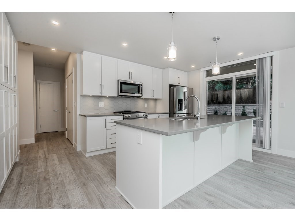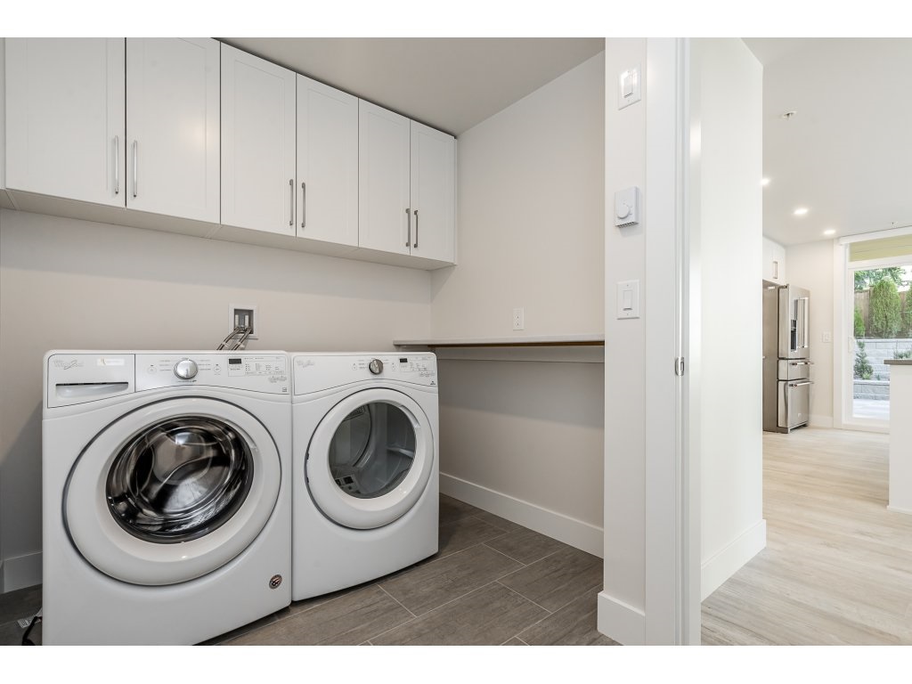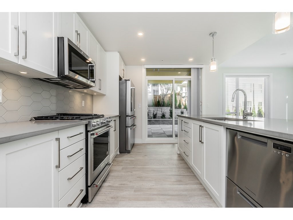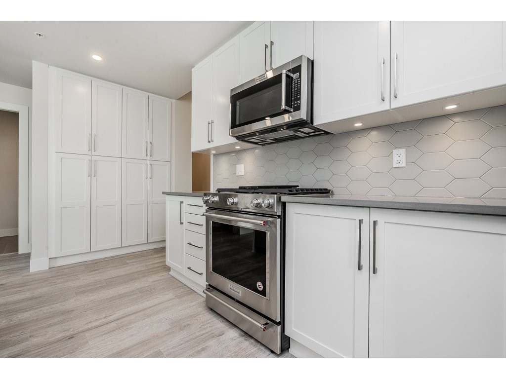 The Ultimate, this is the top of the line Mill District unit fully optioned out. Fantastic Location close to Mill Lake and Sevenoaks. This is a rare one of 2 units with 3 bdrms and an adjacent 1 bdrm knock off suite with it's own kitchenette, and A/C. Perfect for guests, aging parent, teenagers or rental income, endless possibilities. This one is in the quiet back building with massive wrap around patio area of just under 650 sq ft. $19,000 worth of options from appliance upgrades, 2 extra A/C units, laminate flooring, Quartz countertops, MBDRM closet organizer, Kitchenette in knock off suite, upgraded laundry area gas BBQ outlet on Patio. There is 3 full baths and built in pantry. Lots here to see, call for details.
