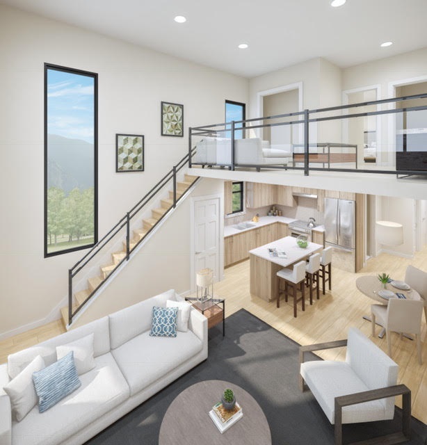 A spectacular and unique CORNER BREEZE Loft Home! A large, airy 2 bdrm home featuring expansive room sizes and an open loft space. Your own PRIVATE back deck surrounded by spectacular mountain views! The main floor boasts loads of natural light with an open living/dining complimenting the kitchen. 1 bdrm up and 1 down, offering ultimate privacy between the two spaces! Large kitchen island perfect for entertaining with s/s appliance package. You will love this very attractive floor-plan. Perfect for first time buyers or investors. Located in a pleasant, family friendly neighborhood and a great place to call home. Close walking distance to shipping, transportation and parks. This one has it all!