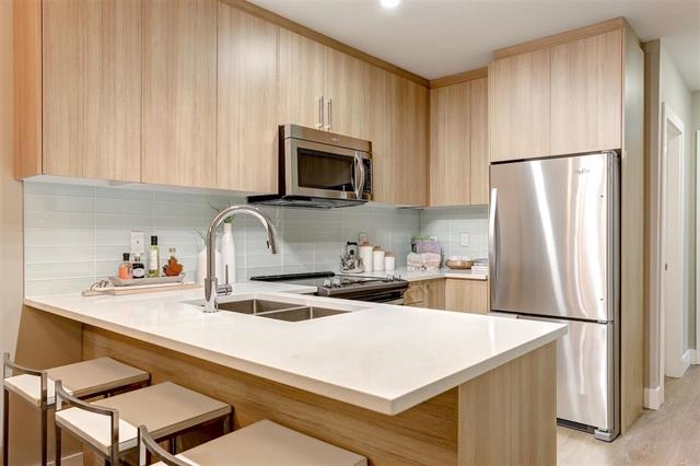ORION, the new star of Pitt Meadows ins unveiled! This amazing 1051 sqfts 2 bed +Den inside unit, contemporary design and perfect location behind Meadowvale Mall. This beautiful unit includes quality laminate flooring, closet organizers, WI closet, quartz counters in kitchen and baths, modern wood grain laminate cabinetry and Whirlpool appliances. So close to everything...schools, shopping, dining, West Coast Express, highway access, nature trails, golf courses, recreation, $3.75 movie theater and more. 2 pets welcome, any size, rentals allowed. Est. delivery Fall 2018. Call today to have this beauty!
