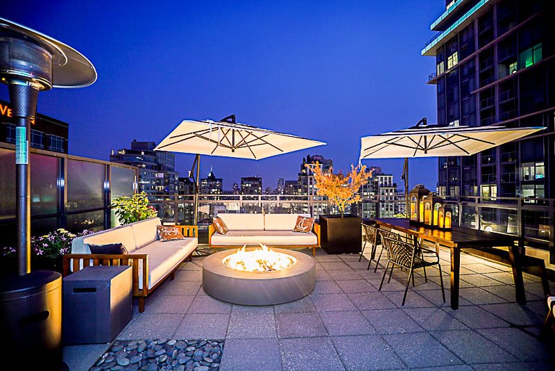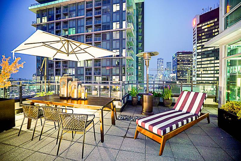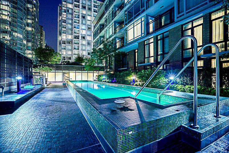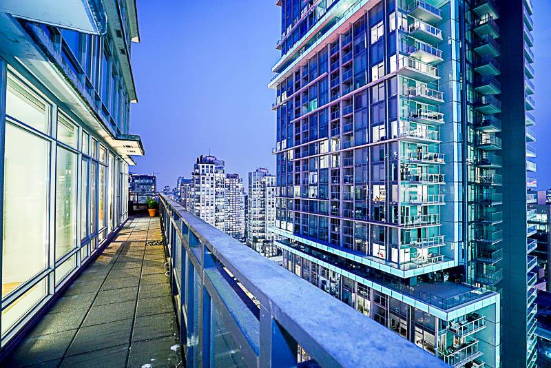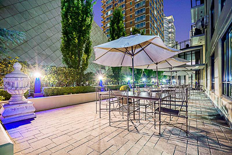 Premier Building L'Hermitage in Downtown Vancouver. 1000 SQ BALCONY w your own Hottub. Captivating vistas of cityscape from practically every vantage point of this outstanding residence. This well thought suite offers an open floor plan with generous living room and dining room proportions. Furnished with beautiful BRAND NEW hardwood flooring, painted in a neutral colour scheme and a floor plan which provides for complete bedroom and living room separation. A kitchen appointed with imported Italian marble, high-end appliances which include a Bosch gas cooktop, Sub-Zero fridge and counter island seating. Air-conditioning, attentive concierge / doorman service, extensive 'resort style" amenities, 2 side by side parking stalls and a storage locker are provided.