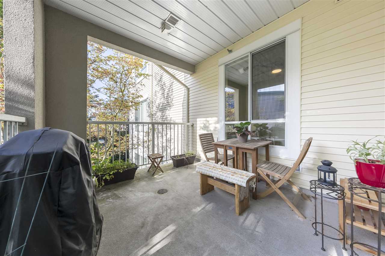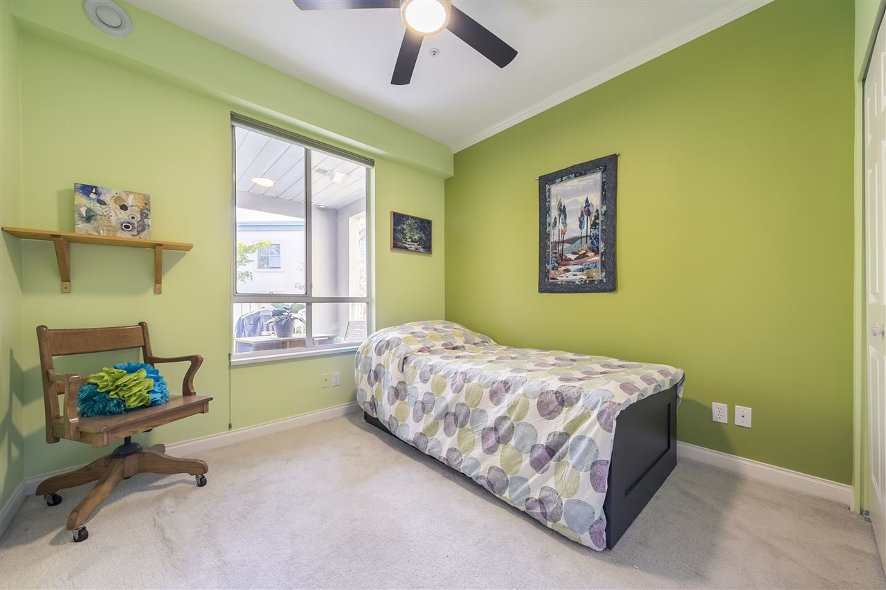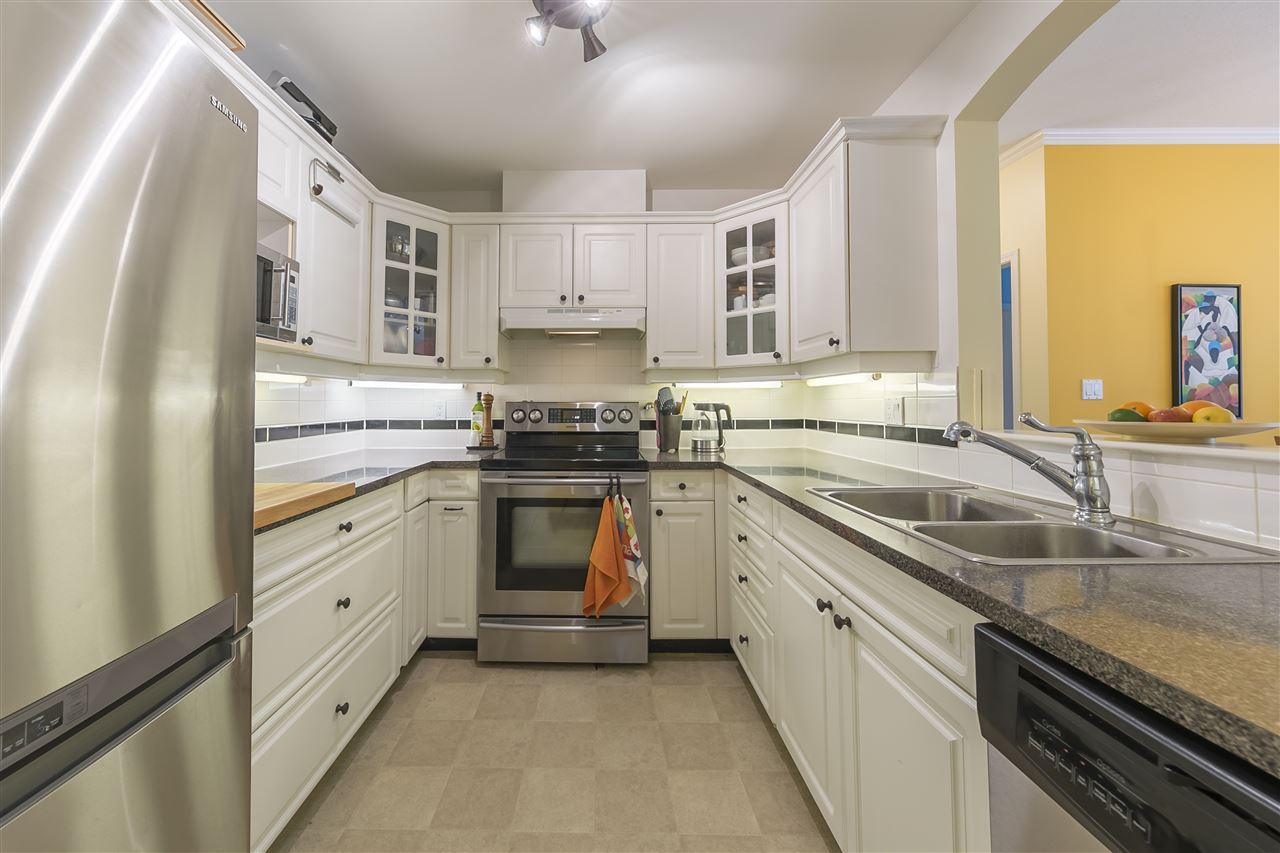 Spacious, well-kept, two bedroom, two bathroom suite in "Magnolia Gate" boasts many great features. This quiet unit has a gas fireplace, radiant in-floor heating, bright kitchen with pass-thru, large laundry room, ensuite bathroom, walk-in-closet, good sized balcony and include a storage locker and a parking spot. The building amenities include lush landscaping and courtyard, gym, hot tub, craft room, 2 guest suites, live-in building manager, and a clubhouse. Location is walking distance to public transit, restaurants, shopping and all manner of services. Strata has limitations on pets and rentals and is age restricted (19+).