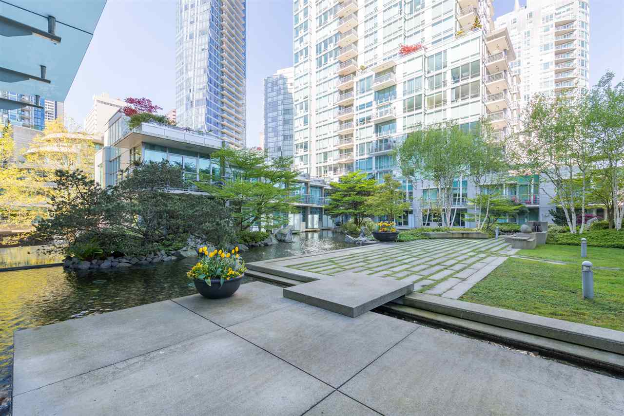 DENIA at Waterfront Place, Coal Harbour designed by James Cheng and developed by ASPAC. This gorgeous South West Corner Suite features 2 bedroom, 2 bath, den, in suite storage all complete with central air conditioning, high end finishing & appliances. You will love the views of the lush water landscaped garden courtyard, marina, Stanley Park & North Shore Mountains. One can enjoy the amazing resort style facilities of a large sun filled pool, sauna, steam room, hot tub, gym, garden, theatre room, lounge & library. Steps to Seawall, Coal Harbour Community Centre, parks, restaurants & shops. Don't miss this wonderful lifestyle by the waterfront!