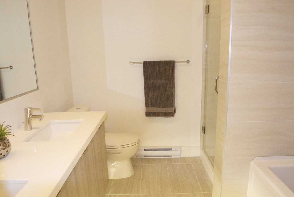 You're going to love this modern 2 bed and 2 bath condo on the ground-level in the tranquil setting of Destiny 2 at Raven Woods. Under warranty, this unit features an open floor plan with 9' ceilings and wall-to-wall windows, stainless steel appliances, quartz stone countertops, fireplace with mantle, generous-size pantry, walk-through master closet, double-sink ensuite with soaker tub, and a 315 sq. ft. outdoor patio. All in brand new condition! Building amenities include exercise room, theatre room, amenities room, bike and kayak storage, self-storage, two parking spots, dog wash area, car wash area and more. Walk out your door onto the beautiful Roche Point trail. Parks, skiing, beaches, transit, and shopping are all nearby.