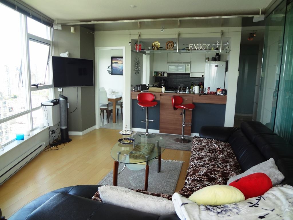 A stunning and rare sub-penthouse at THE MAX! Completely renovated in 2012 this 2 beds, 2 baths, den and over 850 Sq. Ft. home is move in ready! Enjoy breathtaking views of False Creek from the balcony's southern exposure. With no expense spared in the renovation featuring high-end designer items including granite counters, renovated bathrooms, built in dining room table, built in surround sound, unique lighting, and feature glass wall. The Max offers top of the line concierge services, 65ft indoor pool, gym, yoga room, three high-speed elevators and more! The perfect place to call home in the most desired area of Vancouver!