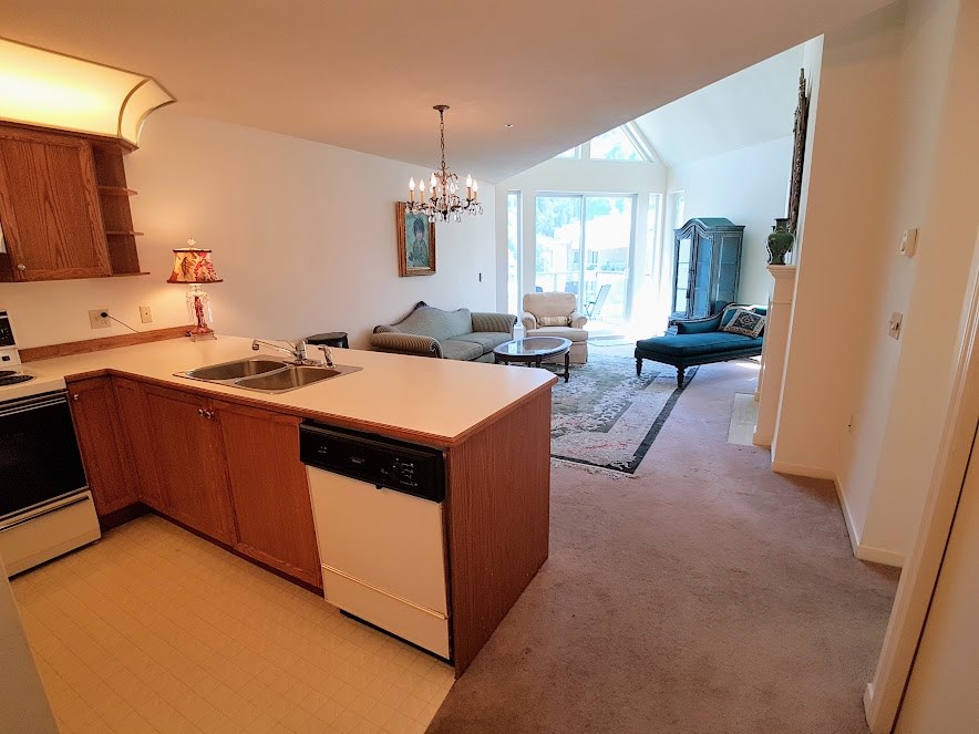 TOP FLOOR WATERFRONT FOR SALE. 2 bedrms, 2 full bathrms, 14 ft vault ceiling in the great room with sundeck, views south, east and north towards Harrison Lake. Located in Laguna Beach Condominiums, exclusive residences building. In 2017 a new exterior of brick, cement board and metal was installed with rainscreen and included roof and deck upgrades. In 2018 a landscape project is currently underway fully funded by the forward thinking ownership group.