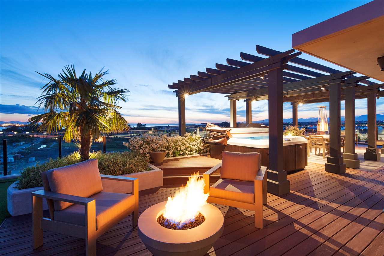 THE LAST NEVER BEFORE LIVED IN UNIT AT TSAWWASSEN SPRINGS! Completely custom penthouse with over the top upgrades makes this never before lived in unit unrecognizable from other of the complex's units! Endless use of high end appliances such as Wolf and Miele complement this open concept masterpiece. You'll be drawn up one of two sets of stairs to your 2,760 sq. ft. private rooftop deck with double outdoor Wolf kitchens to take in sweeping views of the surrounding golf course, the mountains and the water while relaxing in an outdoor living area complete with a jacuzzi, complete entertainment system, four firepits and your own private putting green. This has to be seen to be believed. Call today!