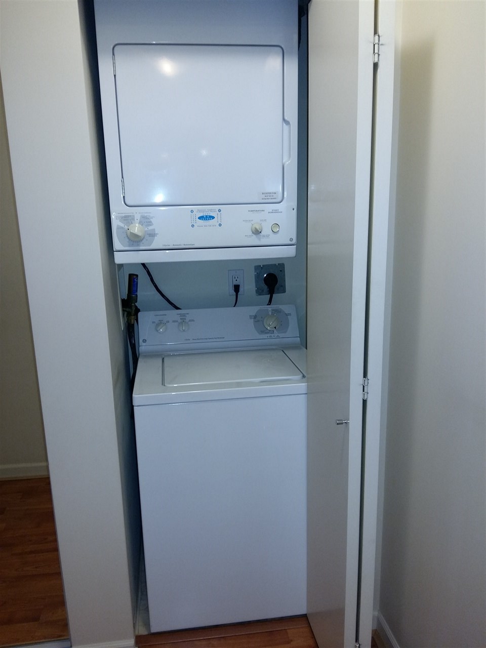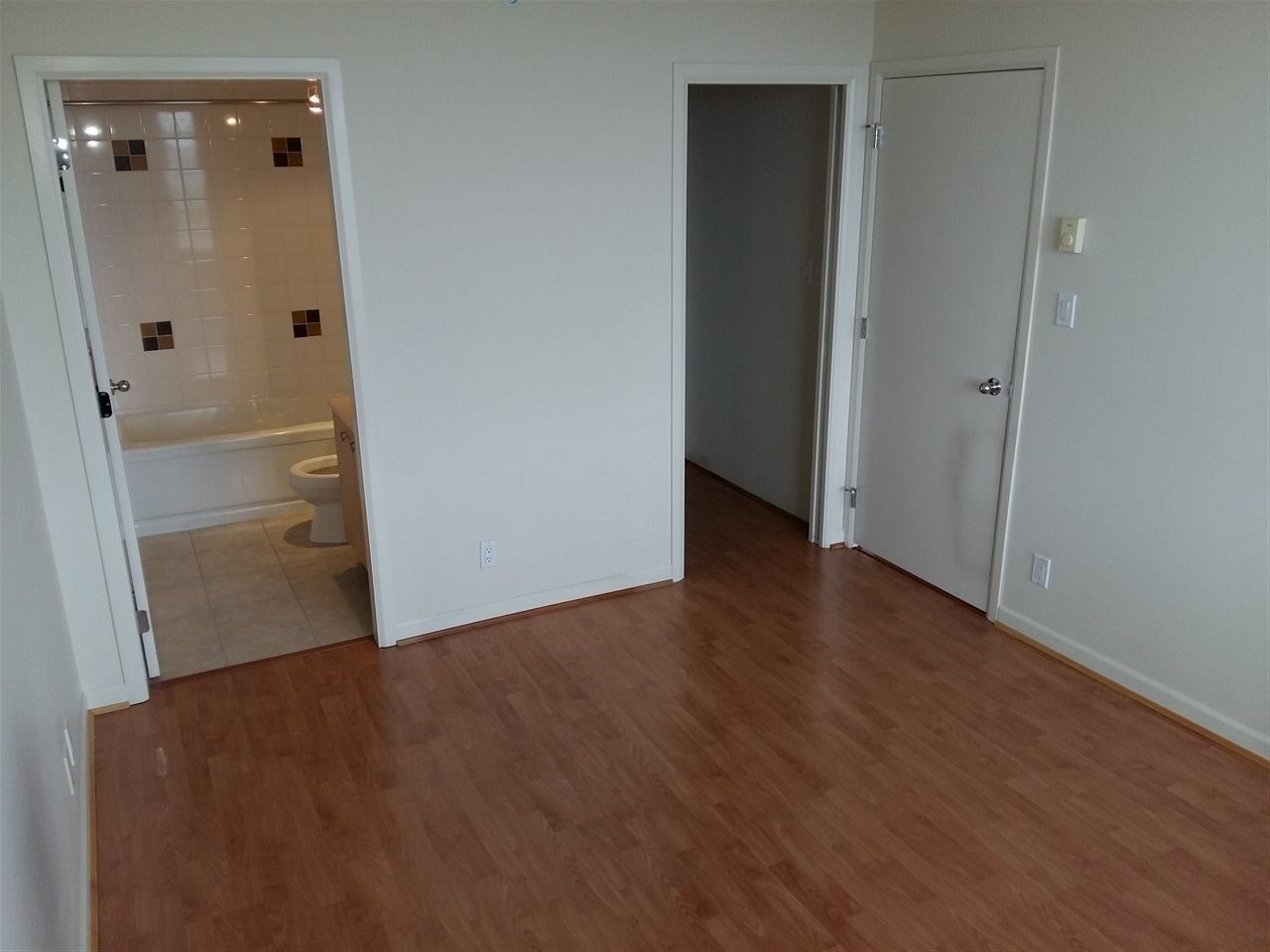 A practical layout , 2 bedrooms , 2 full baths suite facing south east , quiet side of the building , higher level with laminated flooring .