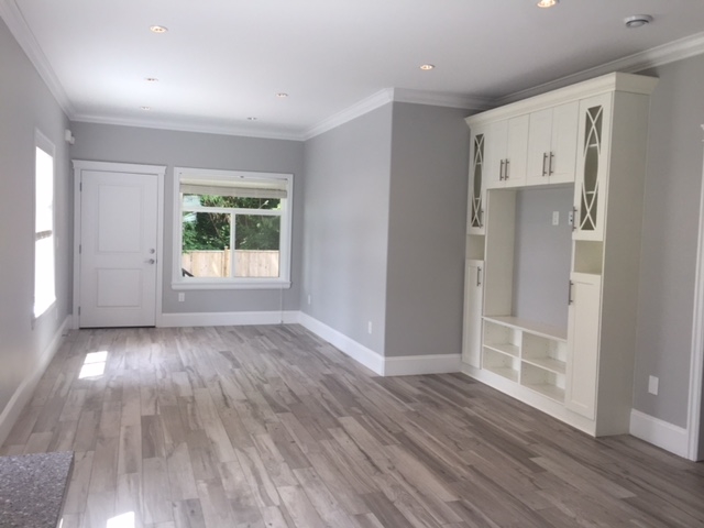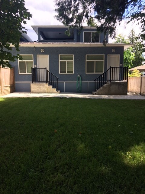Top quality built large 2200 sqft half duplex just like single house with lot size 34x145 = 4930 sqft. South east view of Richmond. Open concept functional layout with main floor offers living room, dining room , deluxe kitchen, rec room and potential 2 bedrooms suite with separated back entry. Upstairs offers 3 bedrooms and large enclosed balcony. 3 1/2 bathrooms, granite counters with extensive use of crown moulding. Huge 1 car garage, 2-5-10 new home warranty. Very central Burnaby location near Metro town, Burnaby South Secondary, shops & restaurants.