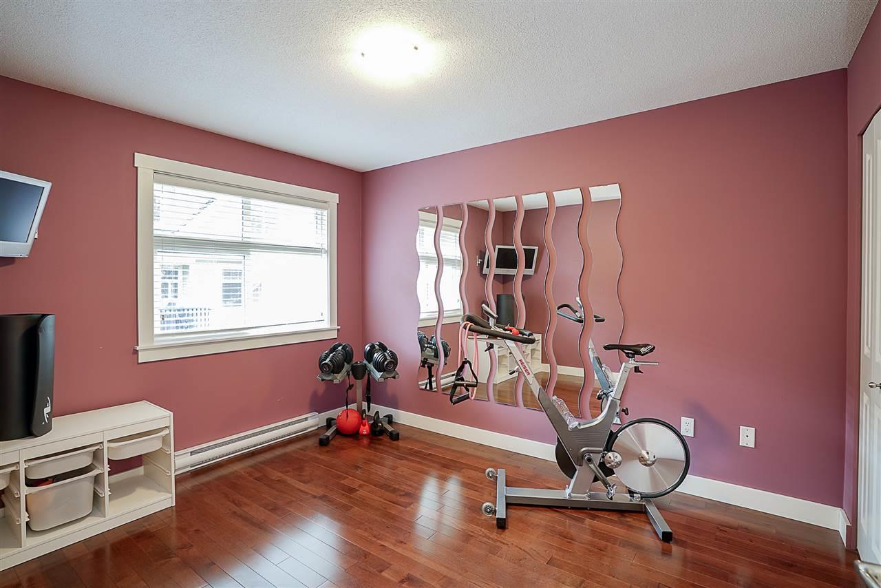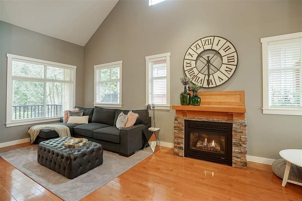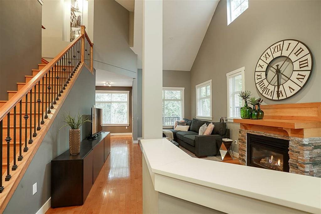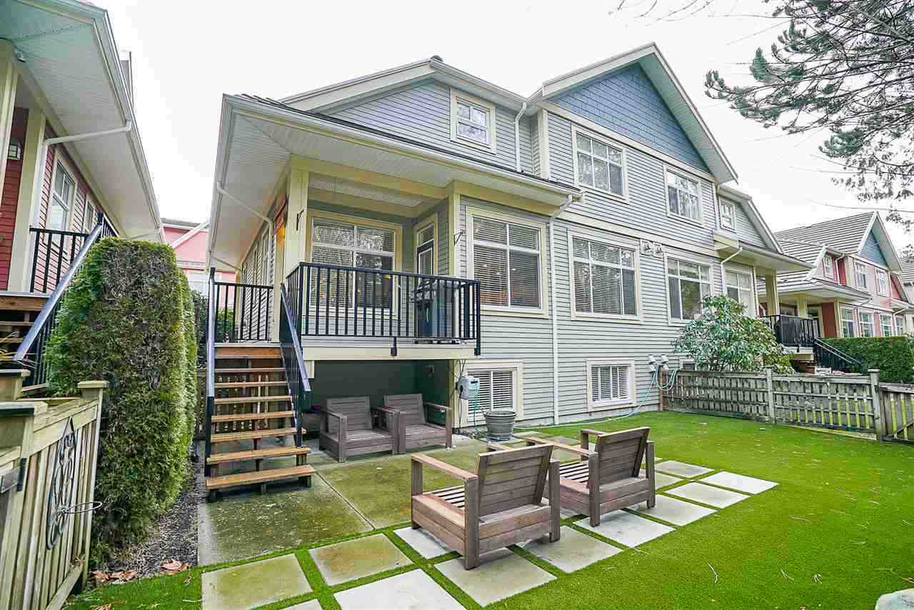 Beautiful and well maintained 2,500 square foot duplex-style town home in the popular 28 unit Ferngrove complex. Located in the coveted Morgan Creek area and a short walk away from transit and Rosemary Heights Elementary School. Quick access to Highway 99 and only 2 blocks away from shopping. Bright, open layout, 3 bedrooms upstairs and a versatile office space. Master suite with vaulted ceilings, walk-in close and ensuite. Full basement with bedroom, media room, built-in speakers throughout and roughed in bathroom. Private maintenance free yard with new artificial lawn and deck over looking the greenbelt. Located in the quiet part of the complex. Double car garage, 2 fireplaces, and lots of storage. This is a gem. Enjoy!