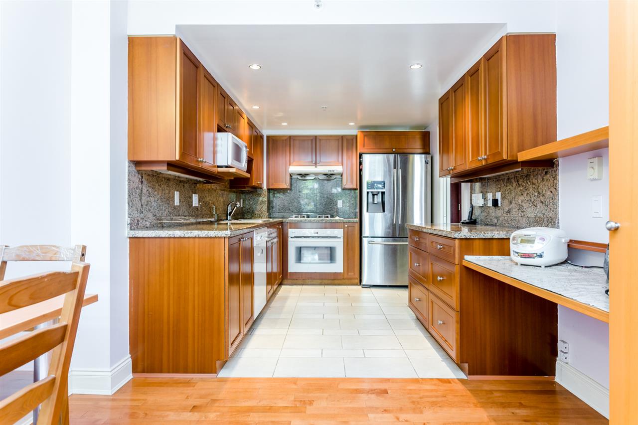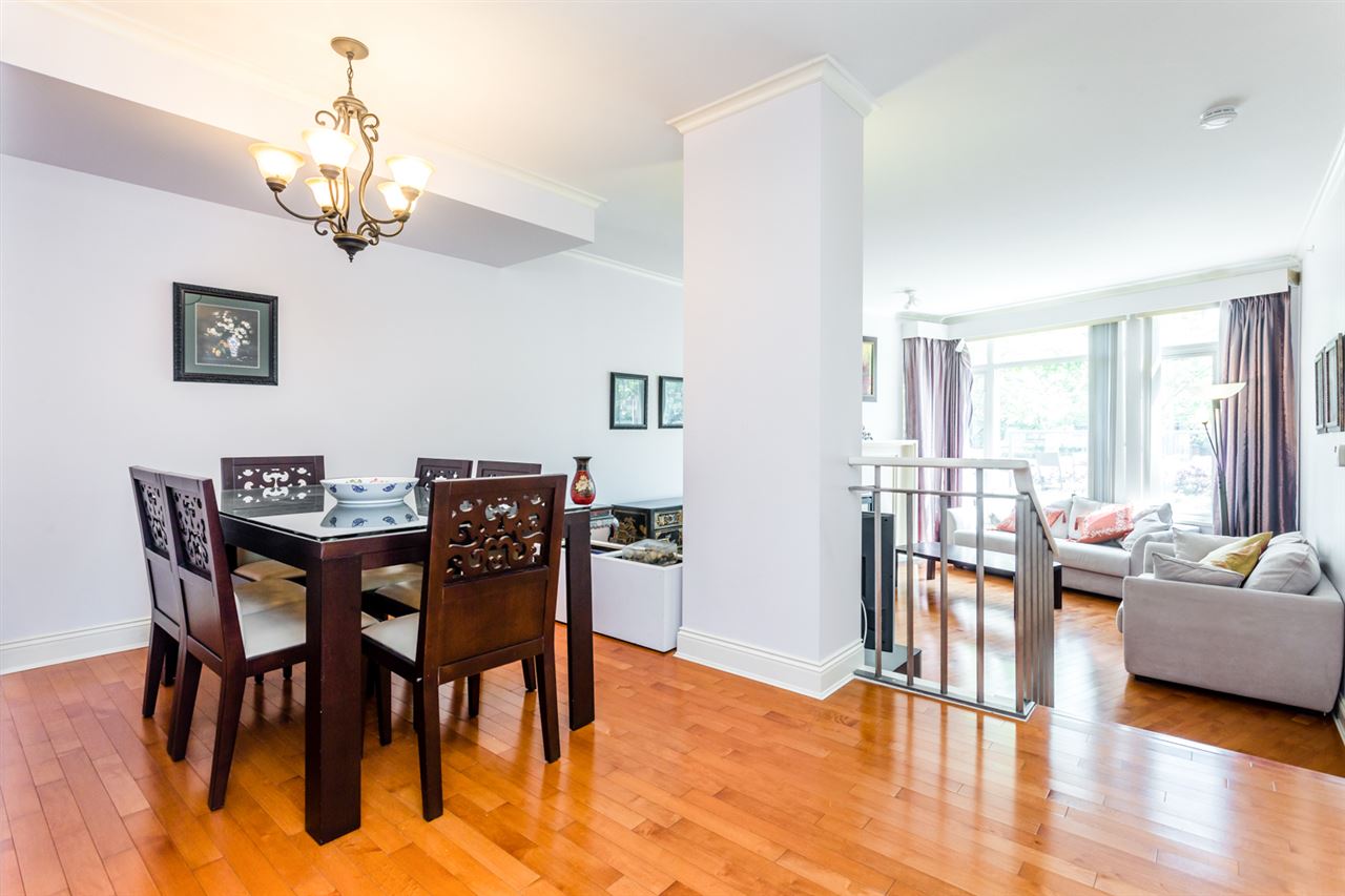 Golden location! Absolutely stunning 1800 sf 2 bedroom plus den home in the MOST PRESTIGIOUS 'THE CONSERVATORY". This 2 level townhome features 9'6 ceilings, maple hardwood floor on main, marbled entrance, private patio and separate entrance from street. Amenities include indoor pool, hot tub & gym. Steps away from Oakridge Mall and Canada Line. Close to CHURCHHILL IB SECONDARY, ERIC HAMBER, CROFTON and YORK HOUSE. OPEN HOUSE: SUNDAY NOV 4TH, 2-4PM.
