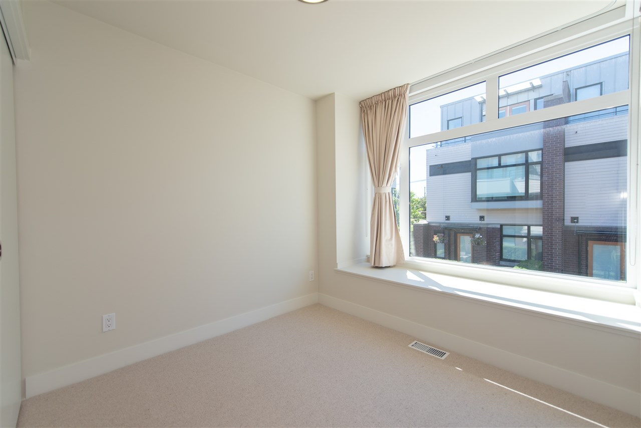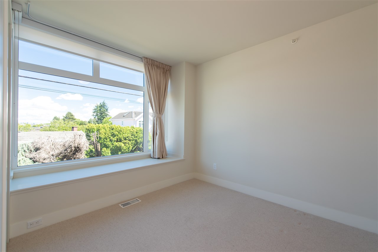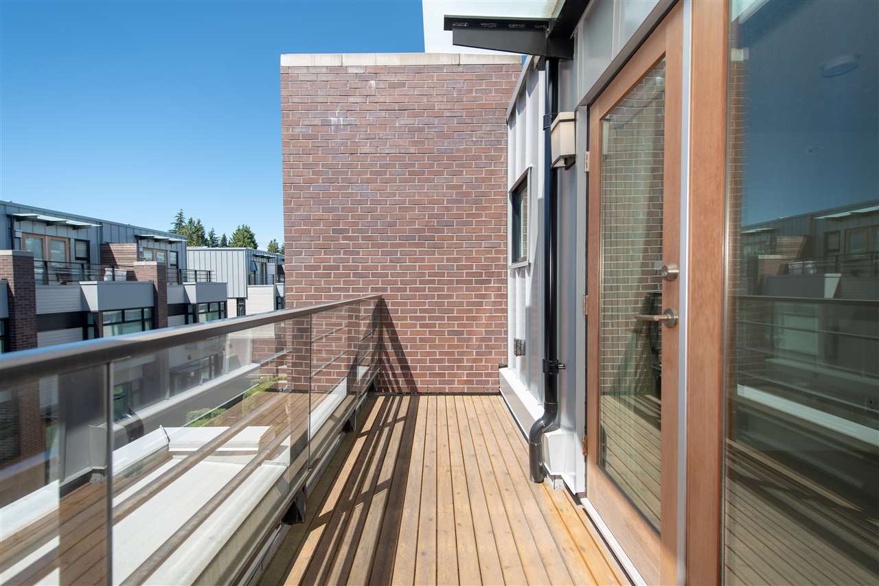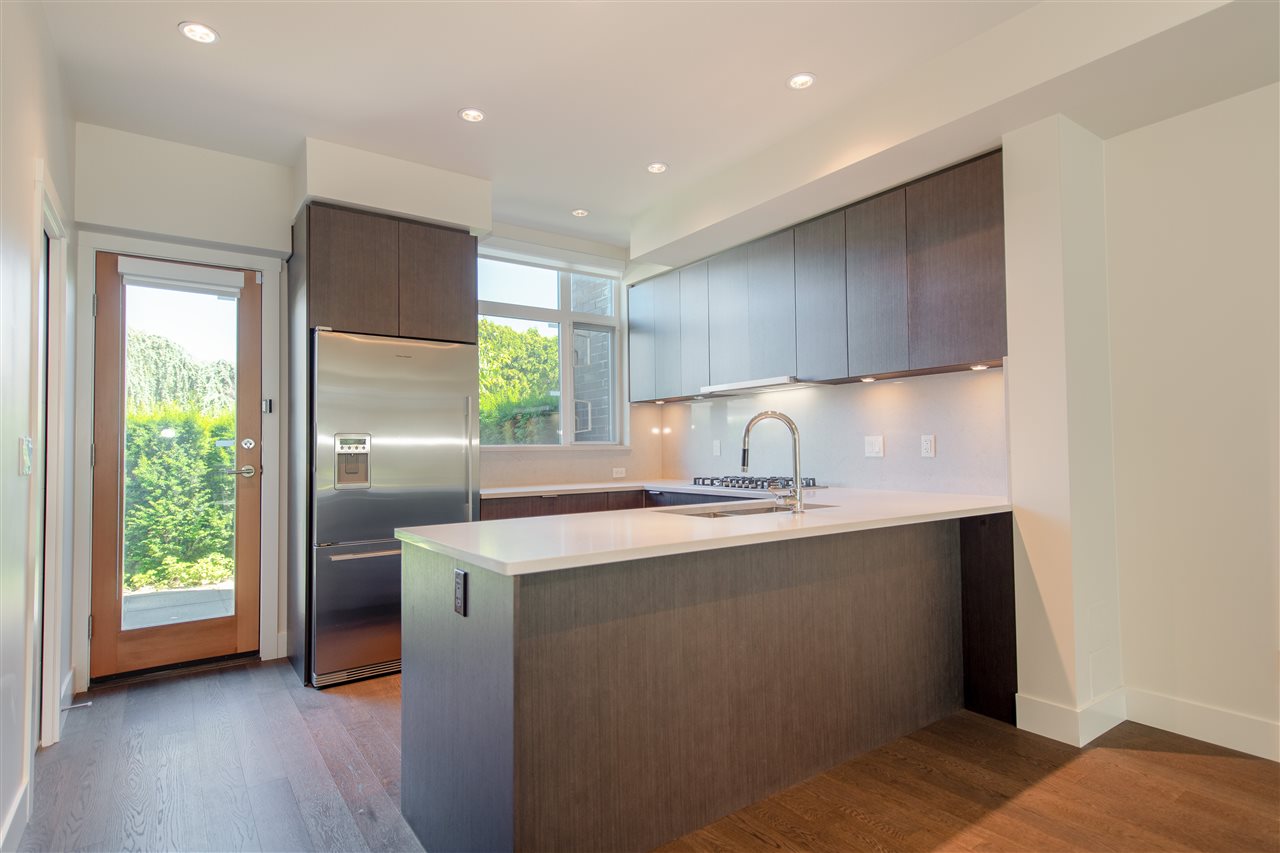 Stylish modern townhouse in desirable Oakridge area; quiet inside unit in like-new condition w/ 1,735 SF interior and 3 bed w/den + 2.5 baths. Features bright and spacious layout w/quality craftsmanship throughout, large balcony adjacent to master bedroom, high-end appliances, advanced Vivint smart home security system, A/C. Expansive recreation room in basement and outdoor patio offers multiple spaces for entertainment. Includes 2 parking stalls. Close to Oakridge Centre shopping, Skytrain, VanDusen Garden & QE Park, Eric Hamber Secondary, Jamieson Elementary, private schools; 10-20 min drive to UBC.