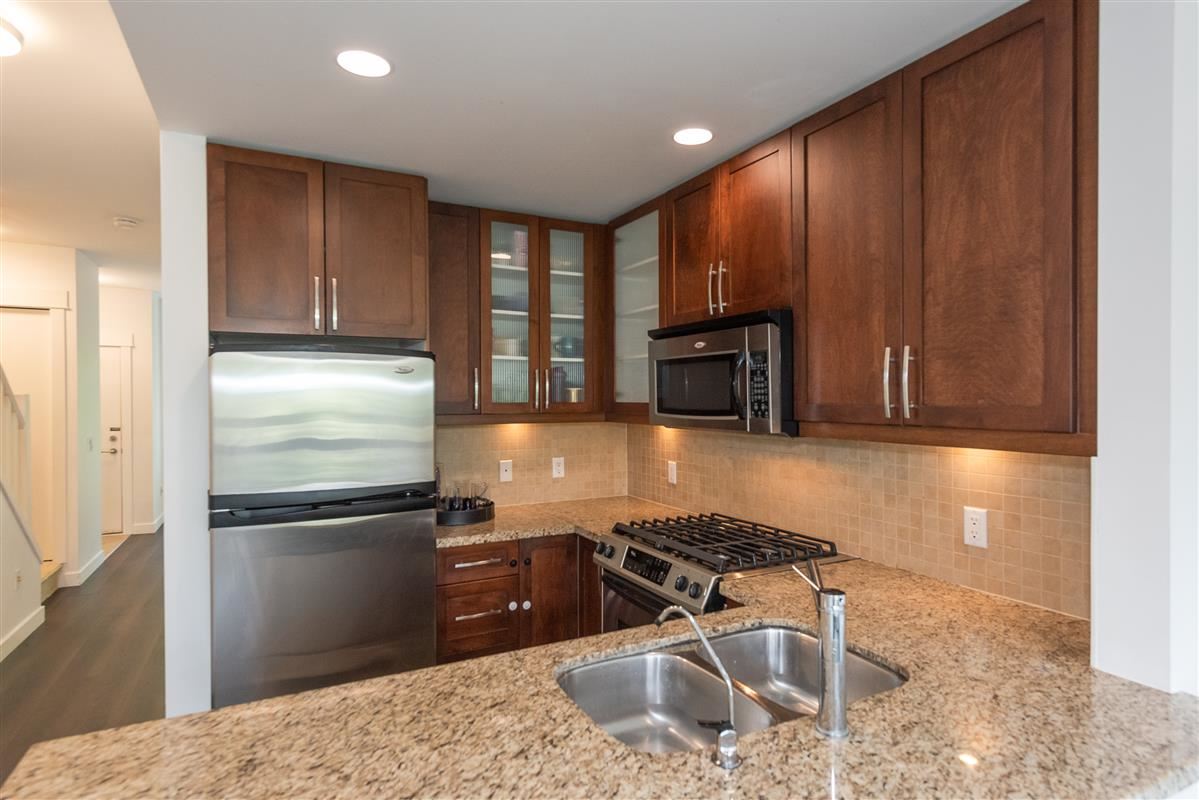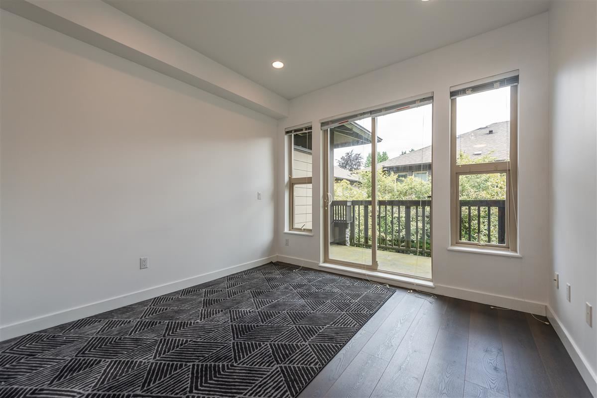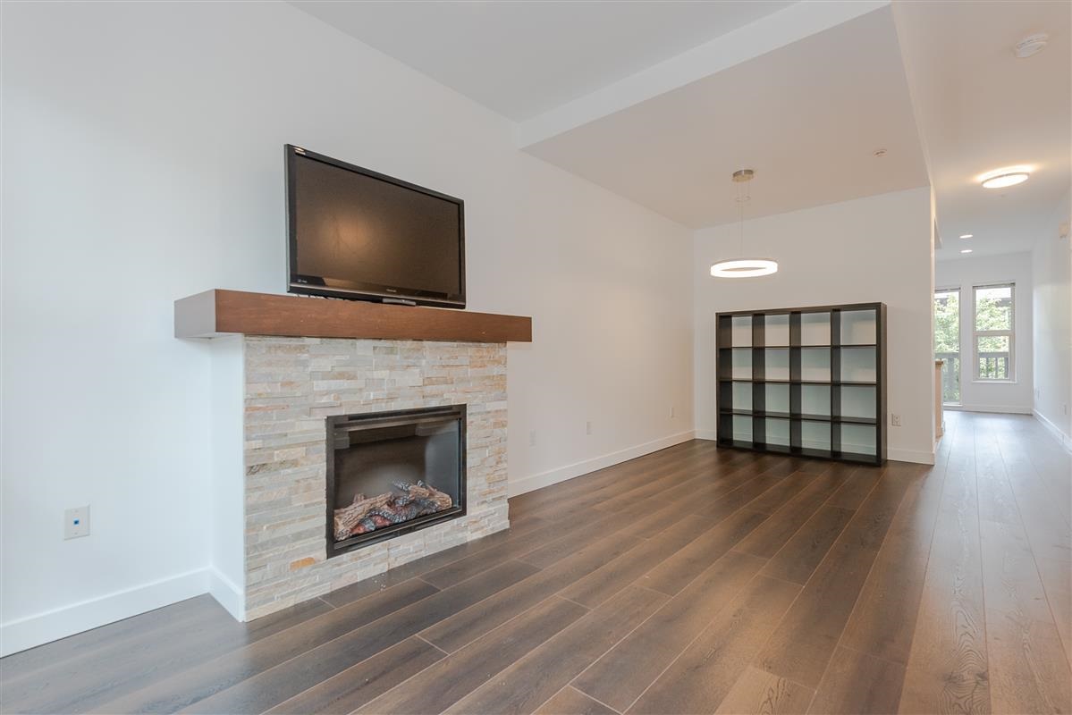 Stunning 2 bedroom plus den, 2 full bath townhome in popular Avondale, in central Lonsdale. Fts include a bright & open floor plan with entertainment size living & dining & shaker kitchen with granite counters & s/s appliances. New laminate flooring, new paint, new led lighting. Radiant heating as well. The upper floor boasts a large master with striking ensuite that has that has granite counters & large shower. The den is open & versatile. In addition the second bedroom offers views of Grouse Mt & borders the second bath, simply put, exceptional value for new construction in Central Lonsdale. Shopping, transit, restaurants just walking distance. 2 parking stalls. Storage. Close to schools & LG Hospital. Brand new Whole foods, Shoppers & SN Fitness.