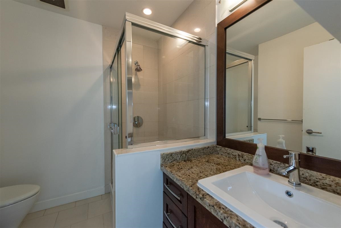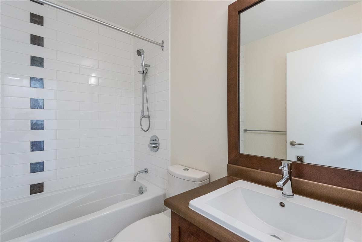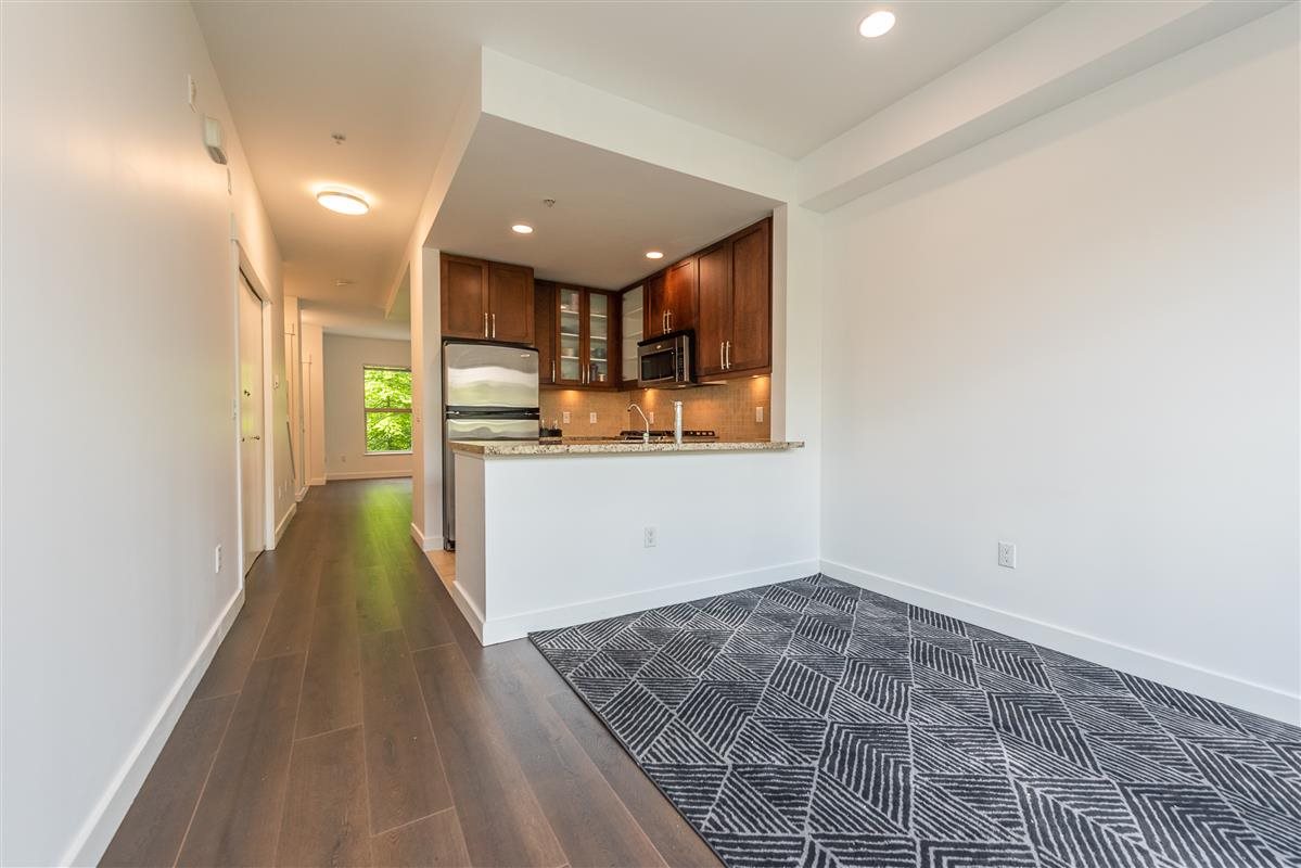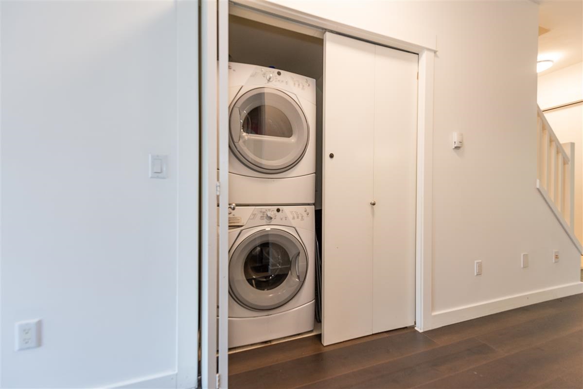 Stunning 2 bedroom plus den, 2 full bath townhome in popular Avondale, in central Lonsdale. Fts include a bright & open floor plan with entertainment size living & dining & shaker kitchen with granite counters & s/s appliances. New laminate flooring, new paint, new led lighting. Radiant heating as well. The upper floor boasts a large master with striking ensuite that has that has granite counters & large shower. The den is open & versatile. In addition the second bedroom offers views of Grouse Mt & borders the second bath, simply put, exceptional value for new construction in Central Lonsdale. Shopping, transit, restaurants just walking distance. 2 parking stalls. Storage. Close to schools & LG Hospital. Brand new Whole foods, Shoppers & SN Fitness.