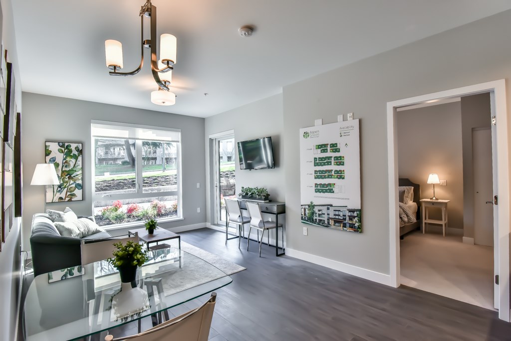 Welcome to Aspen Green available as a Life Lease purchase (60+). Ready to move in. Lead Building (Leadership in Energy and Environmental Design). Gold status. Beautifully finishes with S/S appliances, Granite counters, laminate flooring, walk in shower in ensuite bath and soaker Tub in main bath. Bike rooms, Multi purpose rooms on each floor. Fabulous Roof Top Garden Patio with Gas BBQ 's, gas fire table, out door furniture to sit and enjoy the beautiful views of the city. Close to all the amenities. Multiple floor plans available. Show suite open Tuesday- Saturday 12-4PM.