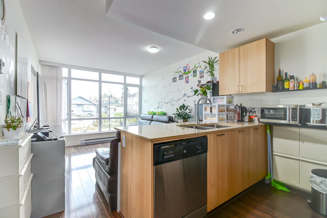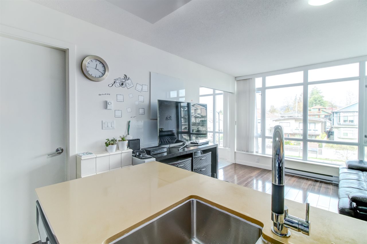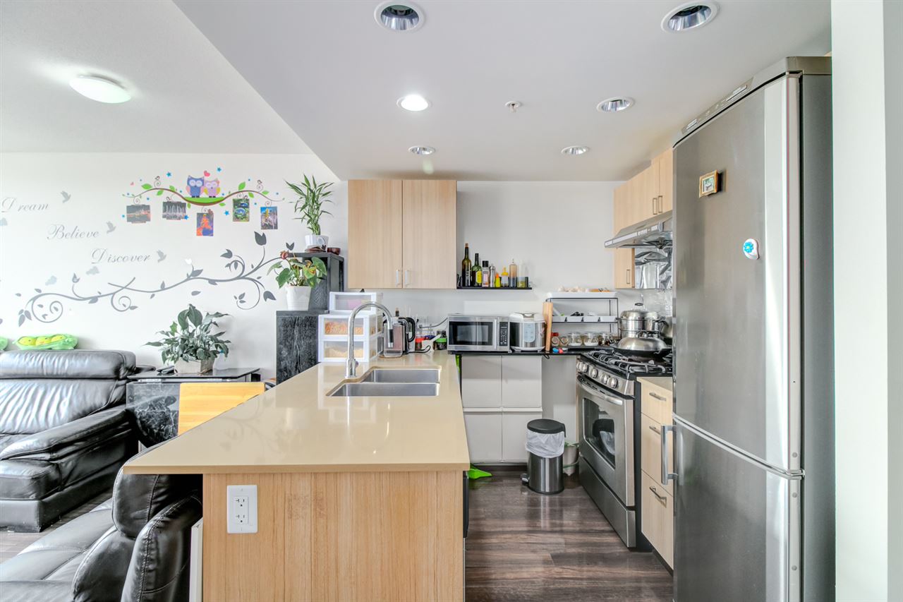 Collingwood's most desirable location introduces 2300 Kingsway at Eldorado Mews! NO RENTAL RESTRICTIONS! Come check out this 1 bedroom, 1 den + bonus flex room located on the corner of Nanaimo St and prime Kingsway. Living area features expansive windows, modern laminate and carpeting throughout. Beautiful contemporary kitchen with composite stone slab countertops with backsplashes, double bowl stainless sinks with spray faucets, stainless steel appliances, and large island for additional prep space. Still under the 2-5-10 warranty as it's only 5 years young! Secured entry and parking, expansive roof deck garden, full equipped 2 level fitness center, easy access to skytrain and bus, and only steps to Norquay Shopping.