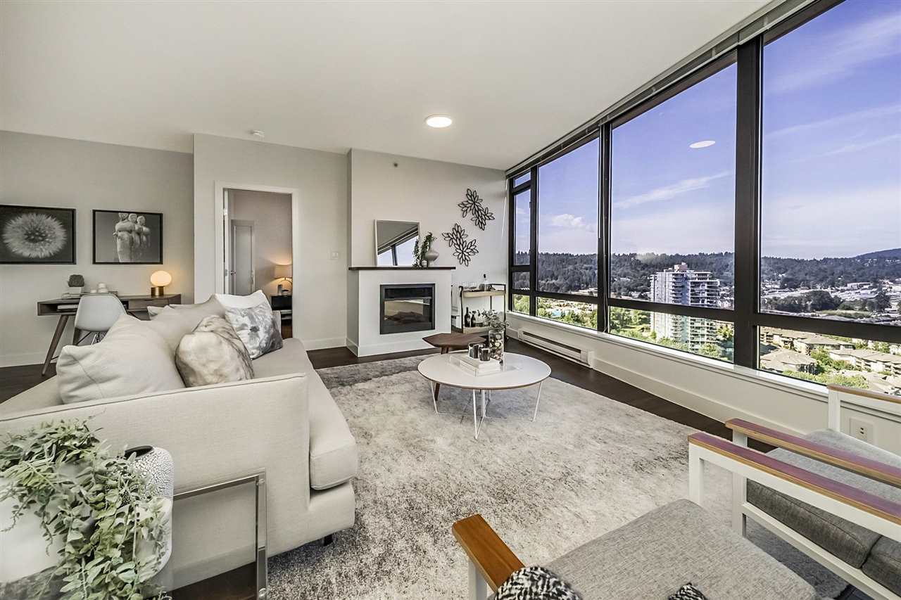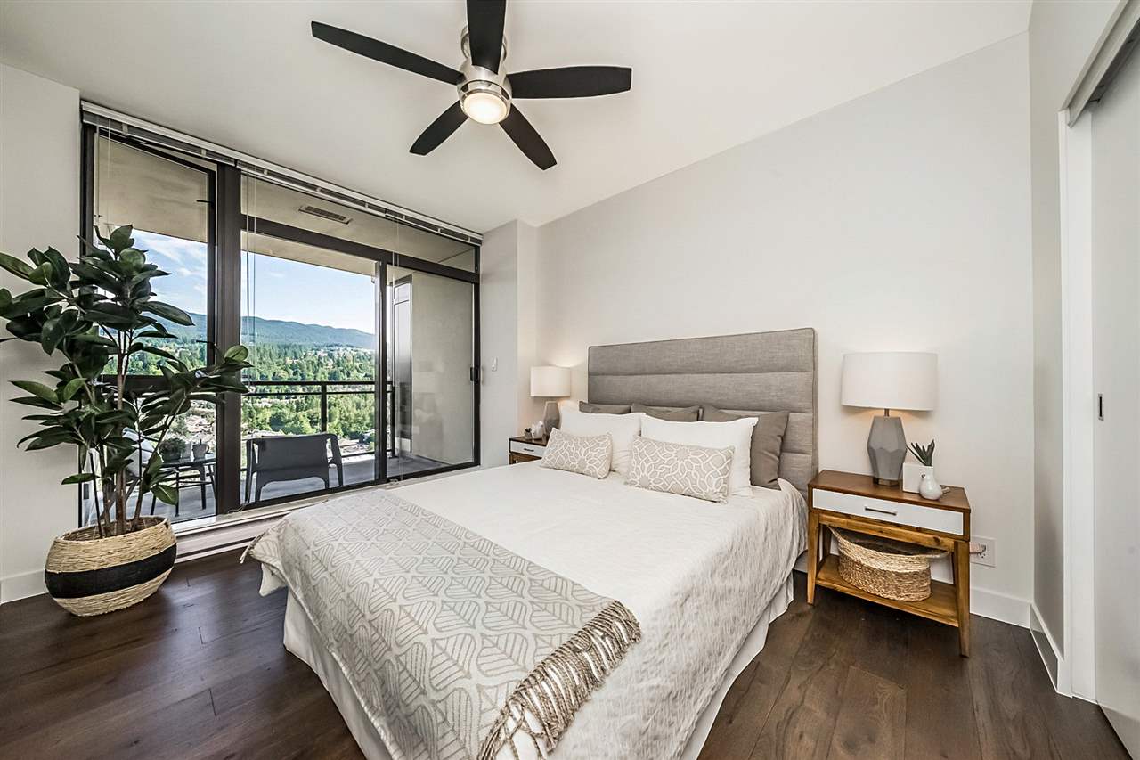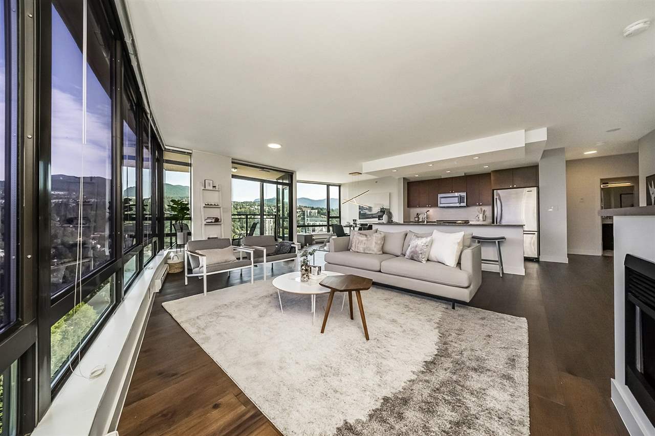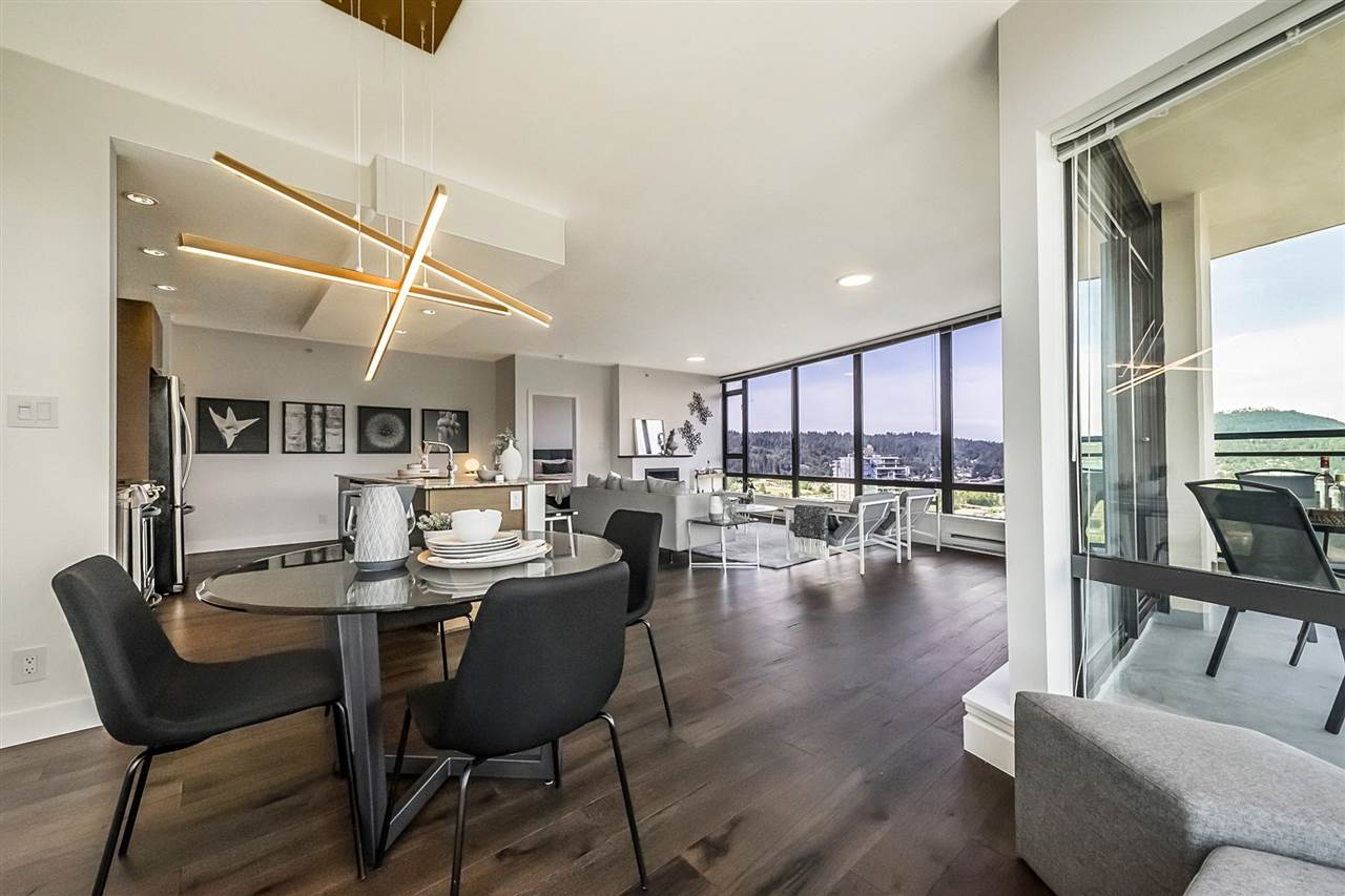 RARE OPPORTUNITY TO PURCHASE THIS SUB-PENTHOUSE w/ an unbelievable unobstructed 270 degree view of the Inlet & mountains; arguably the Best Views in Suterbrook Village. Open concept layout with wall-to-wall windows. Features brand new engineered hardwood & baseboards, freshly painted with new LED light fixtures, big covered deck off living area; dream kitchen w/ granite coutertops, new backsplash, & S/S appliances. First-class amenities including a full gym, pool, hot tub, sauna, steam room, squash court, theatre room, pool table, outdoor terrace and more. Great location! Steps to skytrain, market, shops, cafes & restaurants; minutes from Coquitlam Centre, Lougheed Mall, Rocky Point Park/Marina/Trails, Rec Centre/Library and more. 2 parking/1 locker.