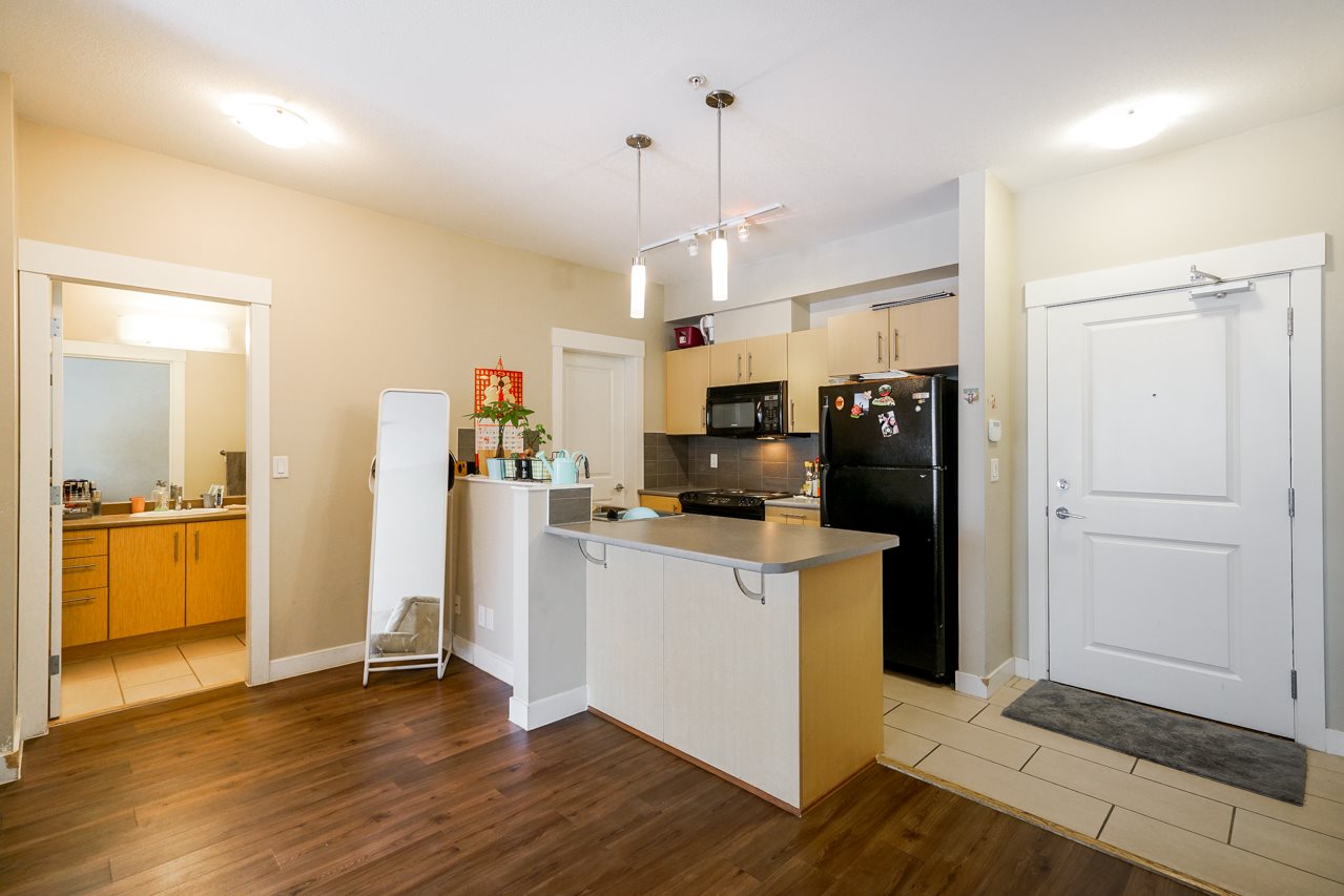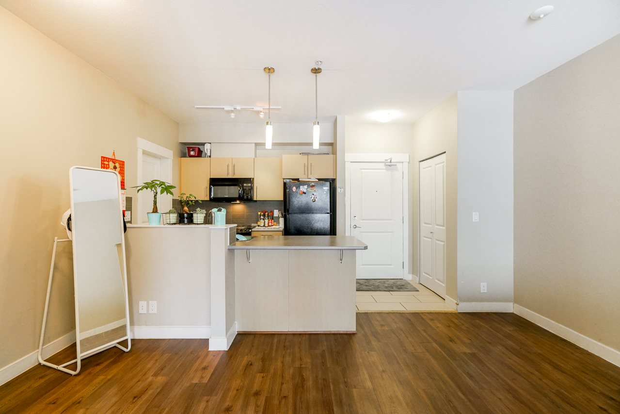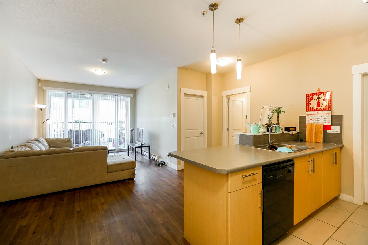 FIRST TIME BUYERS CHECK OUT "TEMPO" in ABBOTSFORD! AFFORDABLE GROUND LEVEL 1 bedroom, 1 bath unit with popular OPEN LAYOUT FLOORPLAN that features KITCHEN WITH EATING BAR, LARGE DINING AREA & SUPER BRIGHT LIVING ROOM with sliding doors onto SUNNY PATIO! SPACIOUS MASTER BDRM & 4 PCE BATH. Secure, well maintained FAMILY & PET FRIENDLY building offers amenity room, 2 community patios, storage locker & underground parking. INVESTMENT POTENTIAL as well with rentals allowed(with restrictions). SUPER CONVENIENT LOCATION just steps away from restaurants & transit, close to shopping, recreation, schools, including UFV, PLUS EASY FREEWAY ACCESS perfect for commuters!