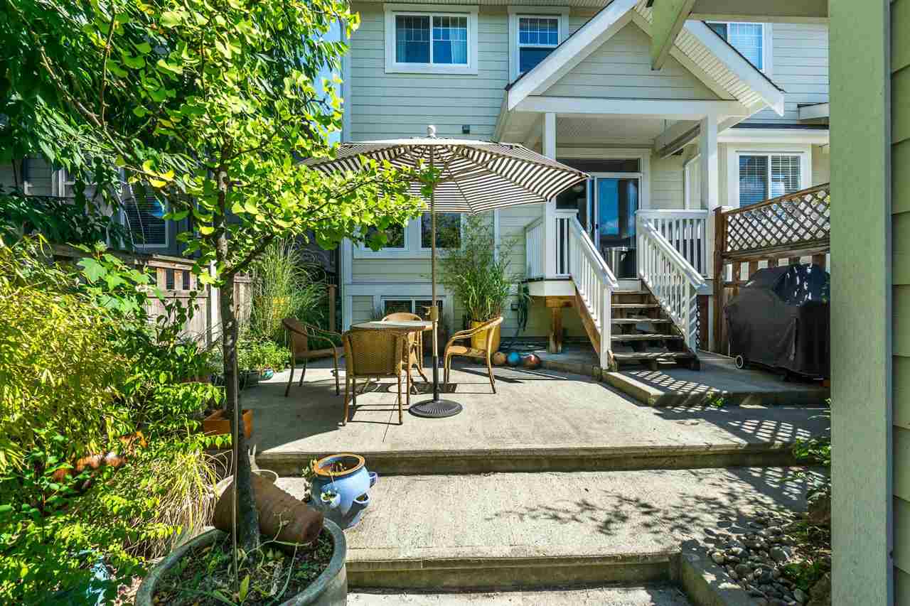 The perfect family home in Bedford Landing! Rare row home end unit with no strata fees! Immaculate well-kept unit boasting over 2250 sq.ft of living space! Bright south-facing kitchen with gorgeous white cabinetry with stone countertops. Kitchen addition with peninsula and added cabinets. Great living area for entertaining. Gas fireplace. Large rec room below with 4th bathroom / bedroom. Huge Master with walk in closet and ensuite. Entire yard has been professionally landscaped and designed! Concrete patio for outdoor living. AC unit has been recently upgraded. Bonus extra parking along the lane. All this steps to Fort Langley village, walking trails, Fraser River, fine dining, and shops. Be quick on this one!
