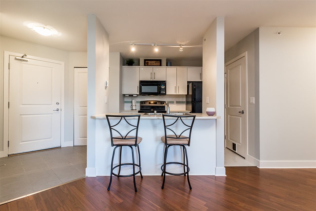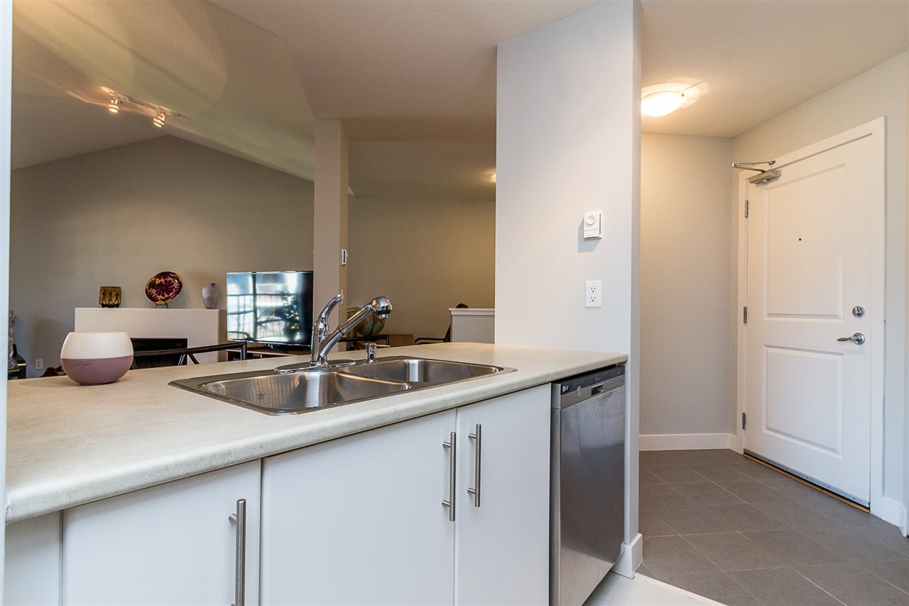 Upscale living in the heart of Maple Ridge! This one bedroom and den TOP FLOOR unit in The URBANO is just steps away to everything you need... shopping, restaurants, transit, leisure centre, library, theatre and schools! The vaulted ceilings & open floor plan, electric fireplace with open kitchen & breakfast bar makes this space feel bright and spacious! Two amenity rooms for larger events plus an exercise room and lounge. Pets and rentals allowed.. perfect for Investors, First Time Buyers and anyone wishing to downsize! Call today for your private viewing!