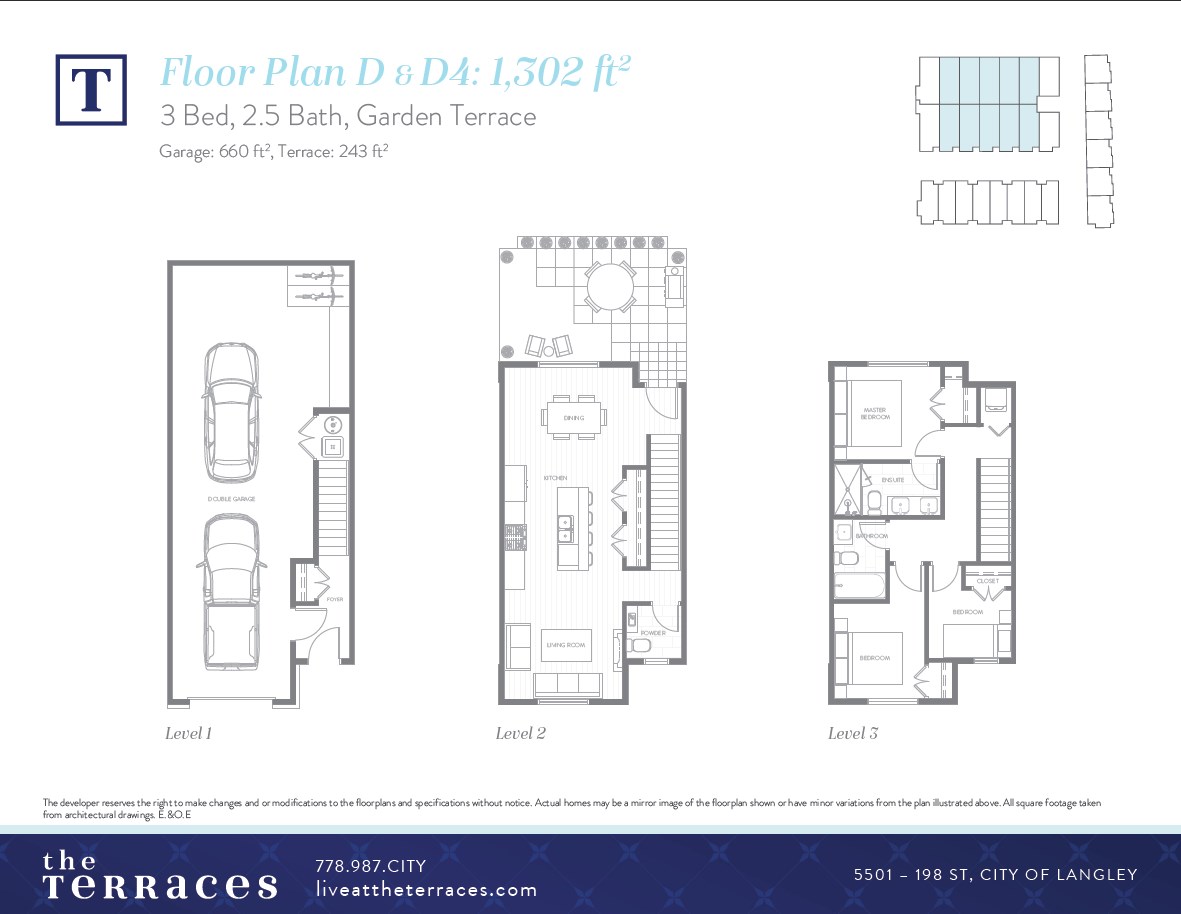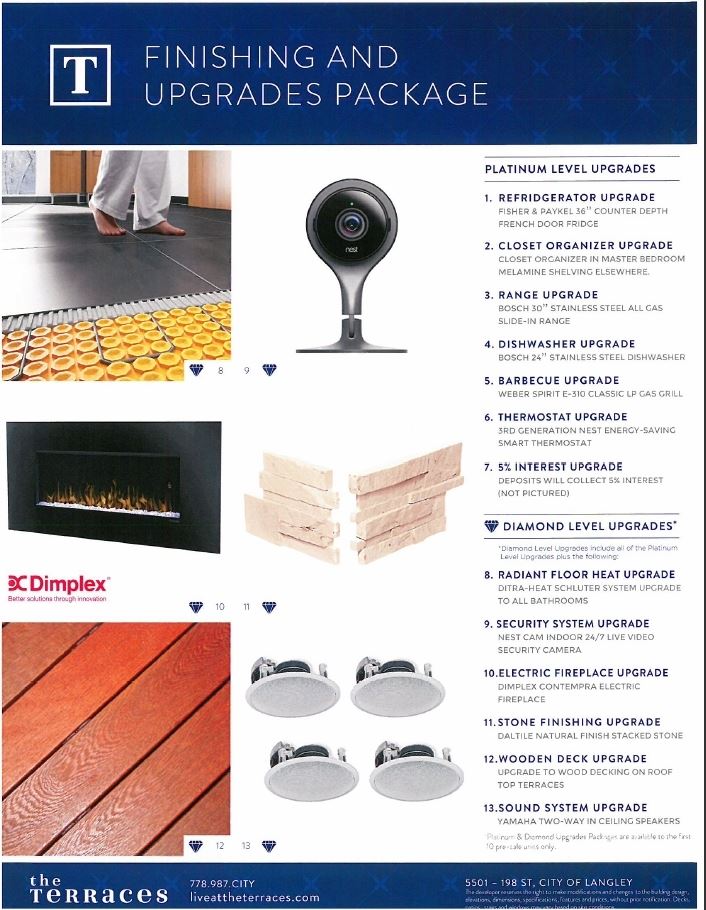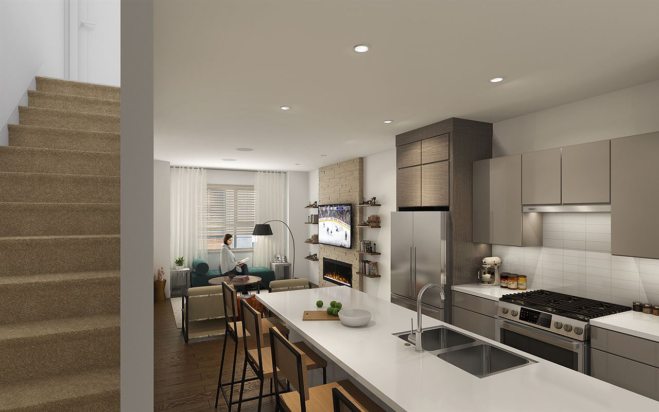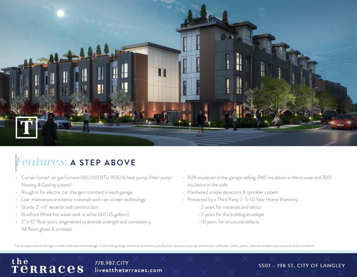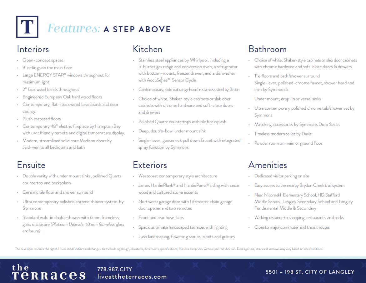 Welcome to The Terraces. An inspired new development where city style meets country spirit. Close to the comforts of the city, yet just removed enough to allow one to wind down in superior comfort after a long day. Within a collection of 28 homes, this D plan is over 1300 SF with 3 bedrooms and 2.5 bathrooms. A gorgeous 243SQFT WALK-OUT TERRACE off the main living space. Forced air gas furnace and heat pump allow for heating/AC year round. This home comes included with the $10,000 platinum upgrade package: Bosch gas stove and dishwasher, Fisher & Paykel 36" counter depth fridge, closet organizers in the master bdrm, Weber gas BBQ & Nest smart thermostat. Forced air gas furnace and heat pump allow for heating/AC. This is an assignment of contract with expected completion to be March 2019.