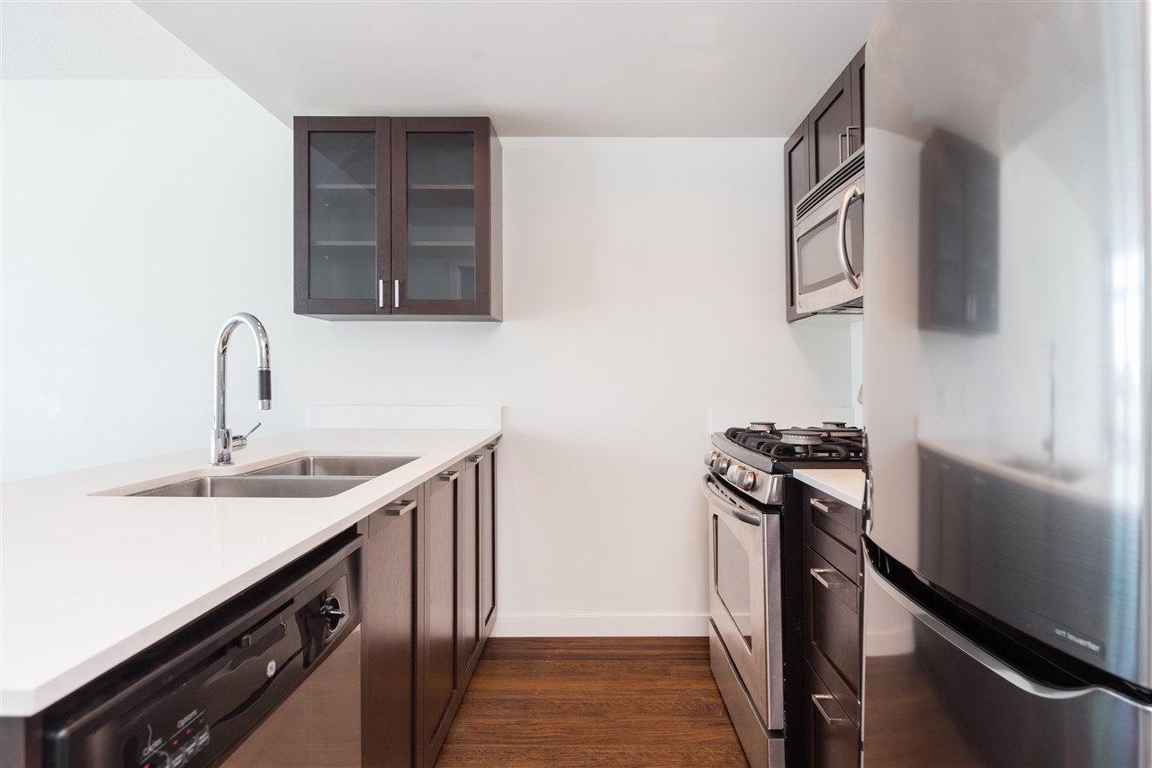 Welcome to The Eldorado, a concrete building built by the renowned Wall Group of Companies. Bright and spacious 1 bed unit faces SE with unobstructed views. Open living area features wide plank floors, expansive windows and a large balcony perfect for entertaining! Design features include gourmet kitchen with granite countertops, S/S appliances, and spa like bathroom. Central location: 15 mins to Downtown, 10 mins to Burnaby, and 10 mins walk to Nanaimo Skytrain. Culturally diverse Renfrew-Collingwood neighborhood includes shopping, restaurants, and Trout Lake. Close to schools: Cunningham Elementary, Norquay Elementary, and Gladstone Secondary. 1 parking and 1 storage included. Open house July 21st 2-4pm.
