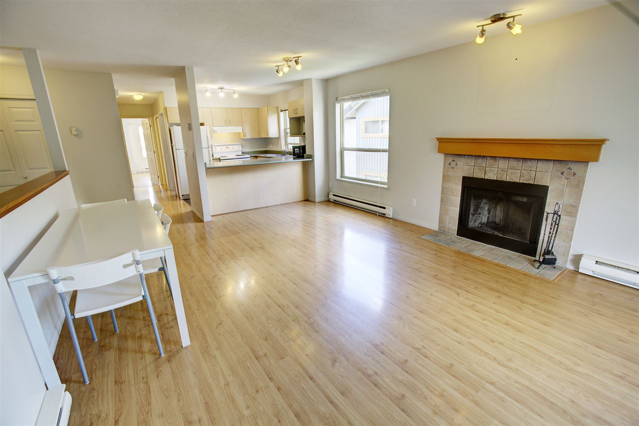 SELLER WILL PAY THE STRATA FEES FOR 1 YEAR! Very rare 2 bed/2 bath top floor end unit. Bright open floor plan with a cozy wood burning fireplace. Large master bedroom with walk in closet. This unit is steps from the schools, community centre, skate park, pump track, cafe's and restaurants! The property comes with TWO private secure underground parking stalls. Grow your own plants and vegetables in the community garden right outside your door! This is a great property for a starter home or investment.