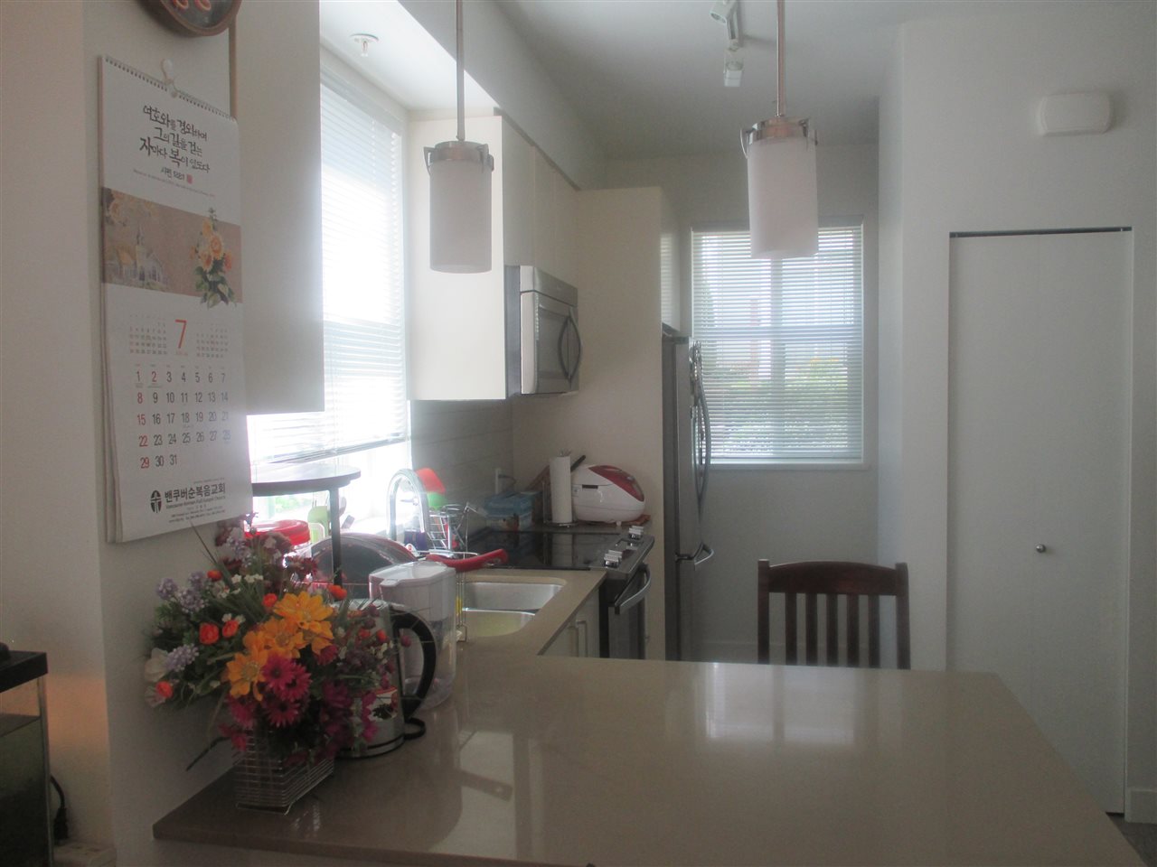 Quiet suite facing south. 1,115 SF + 90 SF patio with 3 bdrms + 3 baths + 2 parkings. Laminate main floor, s/s appliances. Excellent condition. Nothing to do but just move in. Convenient location, walking distance to Kingsway, library, rec centre, shopping, schools, bus stop and skytrain. 5 minutes to Metrotown. OPEN HOUSE Saturday Oct 20th 2-4pm.