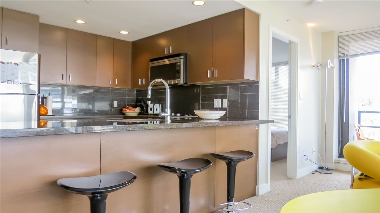 High Rise concrete building. Very close to all amenities, shopping, walking, distance to transit, schools (Anderson Elementary & MacNeil Secondary School.) Functional layout, lots of insuite storage, floor to ceiling windows, spacious bedrooms, stainless steel appliances, granite countertops, parking conveniently located near elevator. OPEN HOUSE July 28 Saturday 2-4