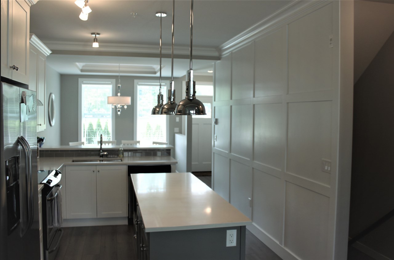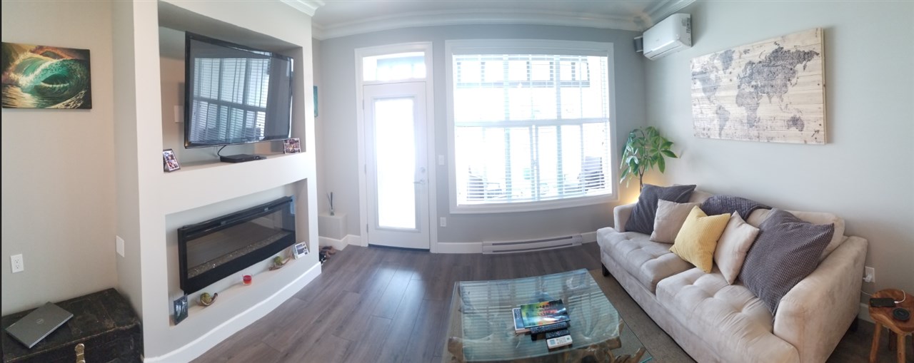 Bright south facing home! Beautiful 3 bedroom, 2 bath townhouse in sought after Brixton Station Development. This home designed and built by national award-winning Algra Bros., is the newest in townhomes. Located in the heart of Garrison Crossing this home has it all! This home features sound proof concrete common walls, underground parking with walk-in entry access directly to your home. The open concept ground level main floor living opens to a massive deck with fully fenced yard. You'll love to entertain in the gourmet kitchen with hardwood cabinetry and stone counter tops. Walk less than one block to rec center, community pool, water park, Rotary trail, grocery, bank, bistro, sushi, front door opens to Cheam Park.