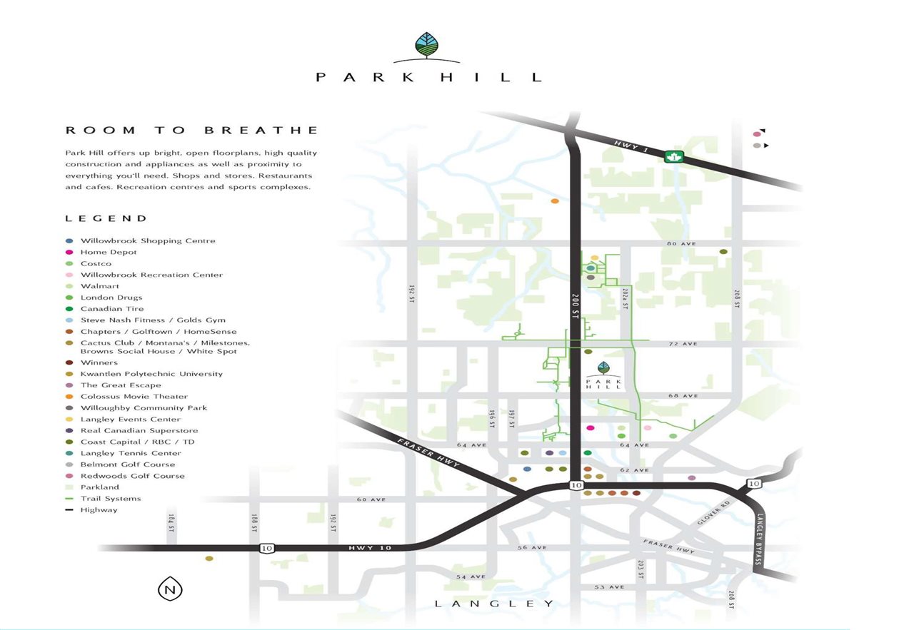 PARK HILL TOP FLOOR!!! is a new community coming soon to Langley's Willoughby neighbourhood. This thoughtfully designed floor plan sits in a quiet residential neighbourhood nestled against 1,200 acres of lush parkland & community trails. Located at the corner of 201st and 68th Avenue, over 660sqft 1 bed+den home offers a stunning kitchen in a Pacific Northwest Style with Quartz counters, Samsung SS appliances, subway tiled backsplash, soft close hinges, islands with built-in storage & a SS under mount sink. Other features include 9ft ceilings, durable vinyl plank flooring, plush carpet in bedroom, close to all amenities and access to 200 street, #1 Hwy and Fraser Hwy! Call today for more details!