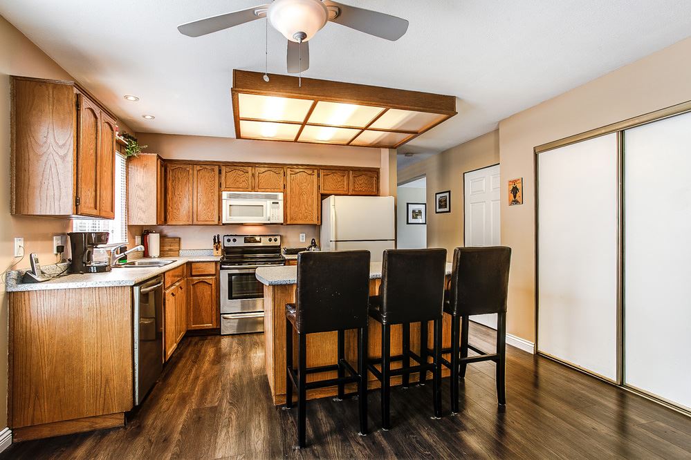 Well maintained, 3 level, 6 bedroom home on a cul-de-sac, best location in neighborhood with the following improvements: New Windows, Paint, Baseboards, Laminate Floors, Hot Water Tank and Gutters. The open kitchen concept has centre isle and family room with cozy fireplace & slider access to private backyard and covered private patio for all year round BBQ's. Beautiful skylight in main entry way leading upstairs to the 4 bedrooms while the master bedroom has full tub ensuite and double sinks. The basement has self-contained large suite with their own washer/dryer/dishwasher. Great location for access to shopping and highway for commuting. Great safe family neighborhood.