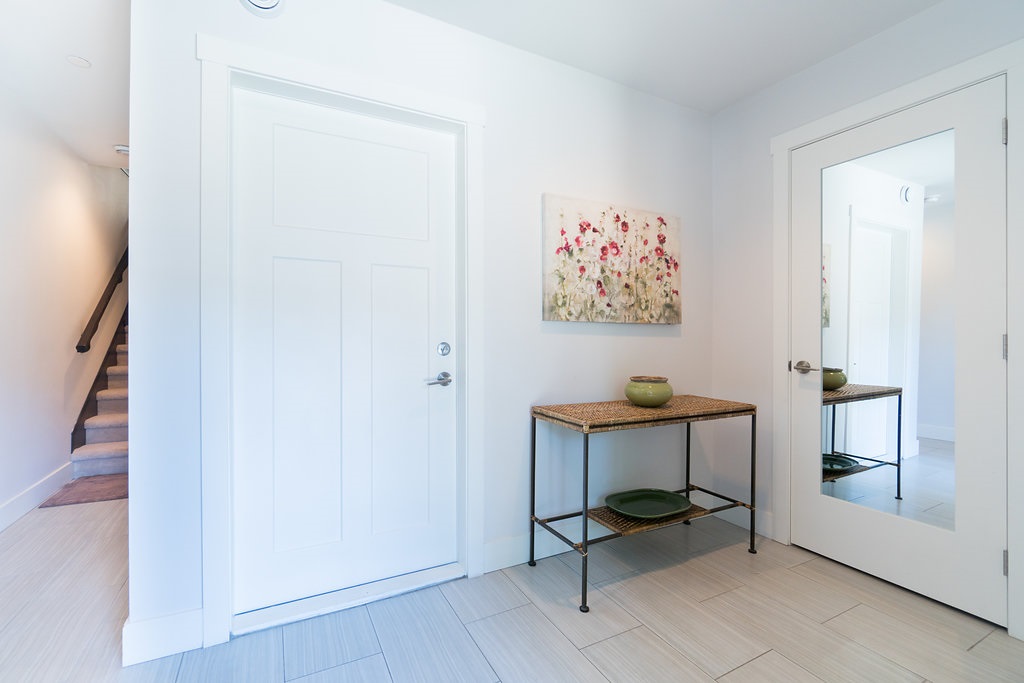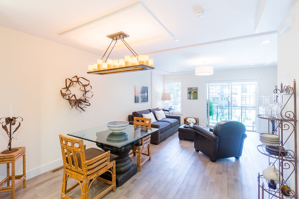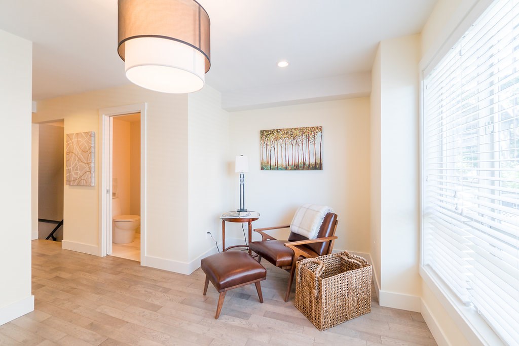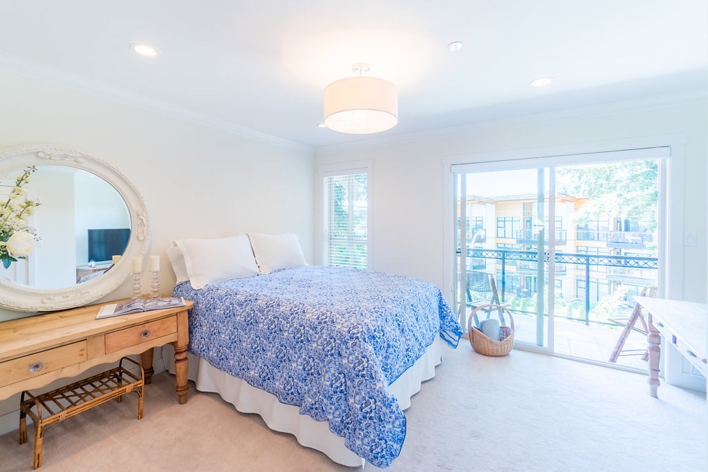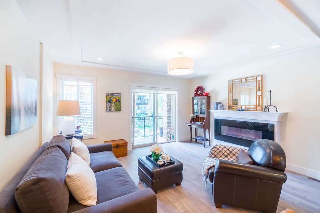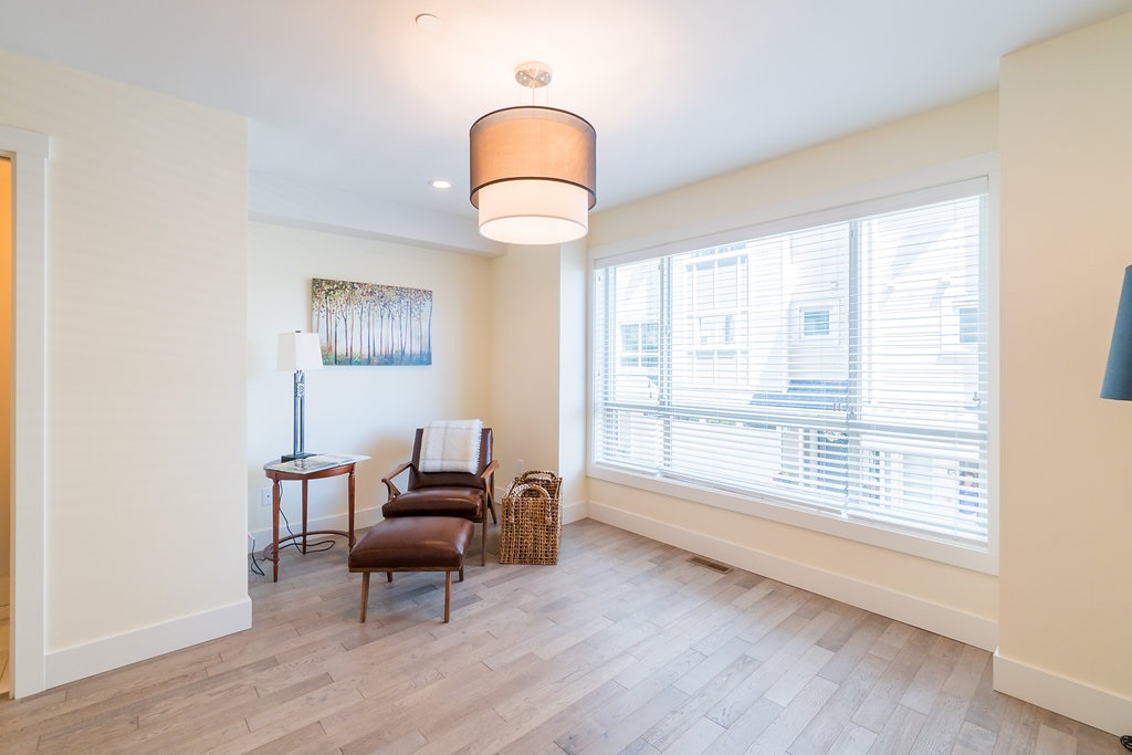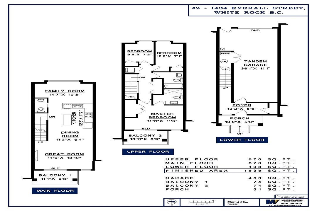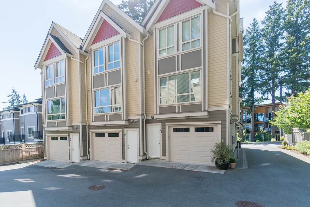 Evergreen Pointe townhouse rarely available!Excellent Walk score* Quiet Street entry off Everall. Feels like a house. Located in uptown White Rock, 3 bedrooms on the top floor w/ 2 full bath. Enjoy quartz surfaces, walk in shower in master & balcony. Tub in 2nd bath & laundry up. Main floor offers contemporary luxury w/ West side ambiance. Real Hardwood floors, tasteful Caesar-stone surfaces on kitchen counter-tops, island with waterfall end, custom cabinetry & Bosch appliance. packge. 2pc. powder on main. Balcony access off living room accommodates space for outdoor seating & BBQ. Double tandem garage. Schools: Thrift & Semi Secondary w/ IB program. Rentals & pets ok, no age restriction. Quiet location-no traffic & great walk score, easy access to transit. Floor plan & video tour avail.