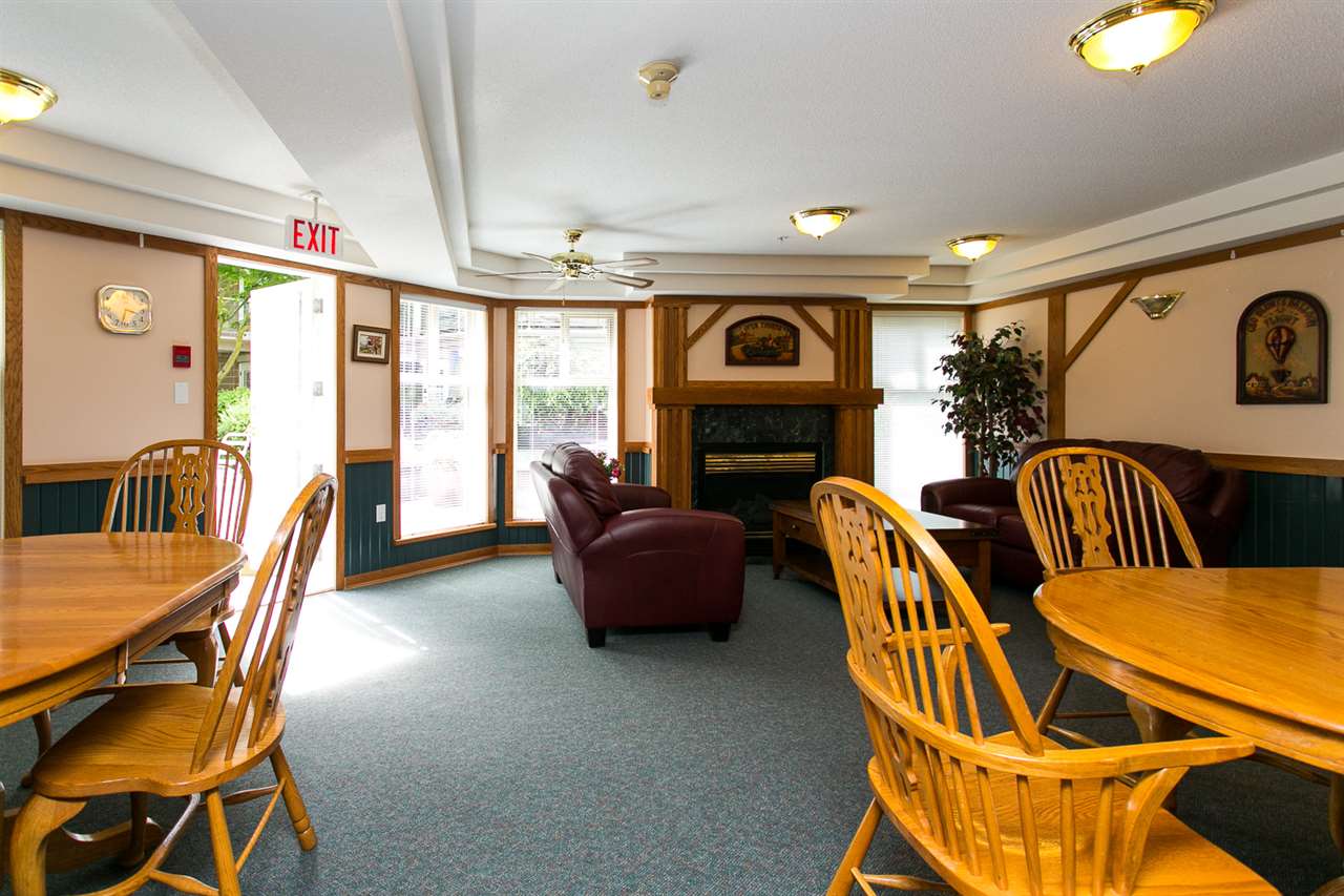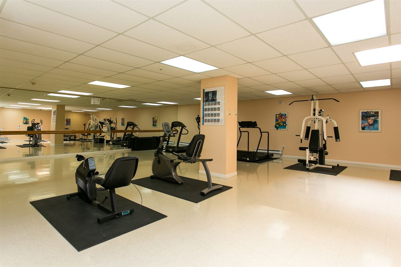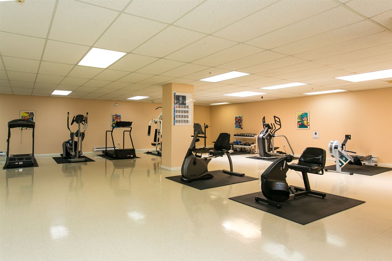 TOP FLOOR CORNER in STRATFORD GARDENS next to lovely Bakerview park. HUGE 1040 sq. ft. 1 bedroom + the den with deep storage closet . Freshly painted thru out. 2 full baths. Sunny western exposure away from traffic noise. This lovely home is immaculate & wheelchair accessible with wide hallways & large roomy kitchen. Cozy gas fireplace. Looks out to gorgeous gardens with a fountain. New roof and balcony in approximately 2011. 1 small pet, cat or dog is welcome. No age restrictions. Walkability "10". Super amenities include an English style "Pub" gathering area, Billiards room, equipped exercise room, 2 guest suites and a workshop. There is a depreciation report. Maintenance includes: hot water heat, hot water and gas for fireplace.