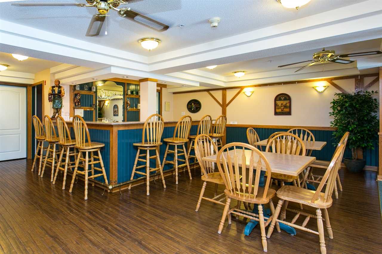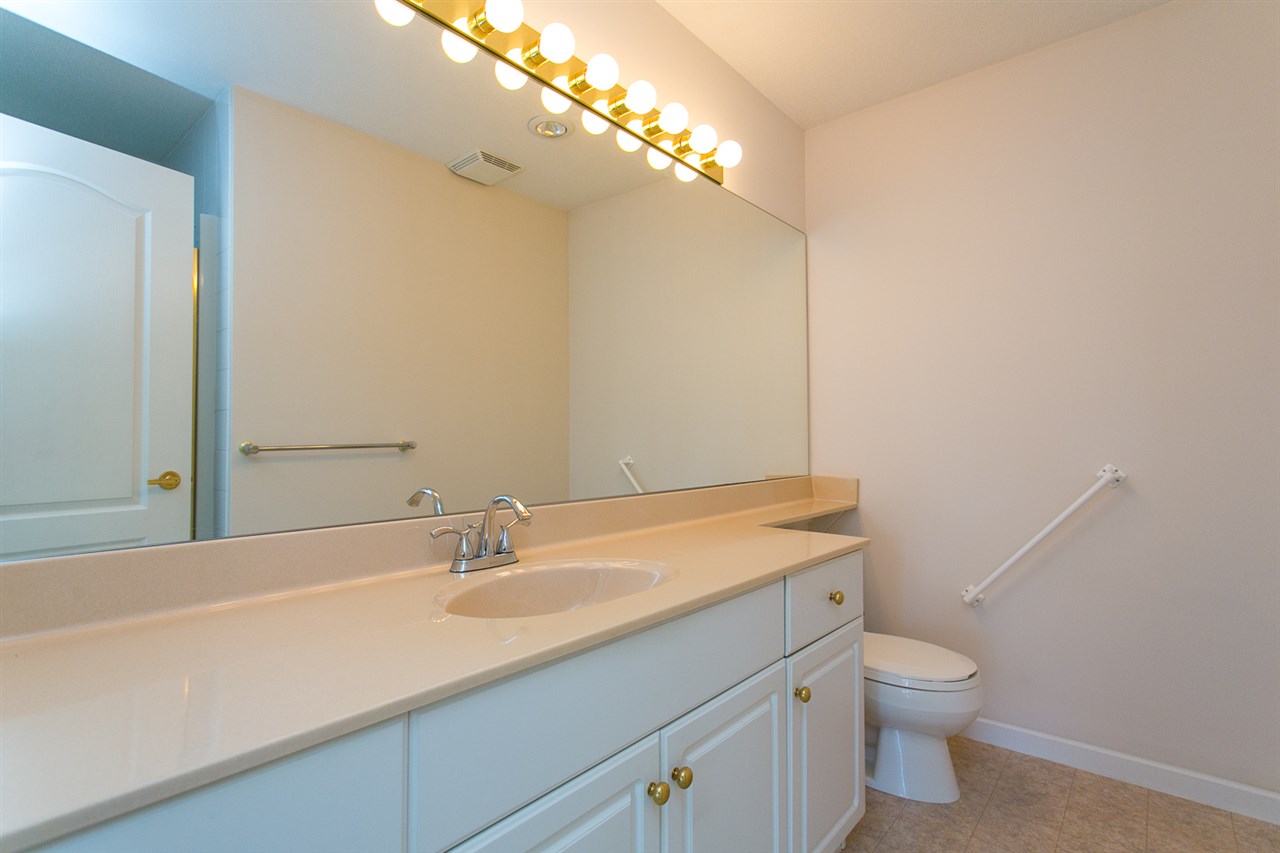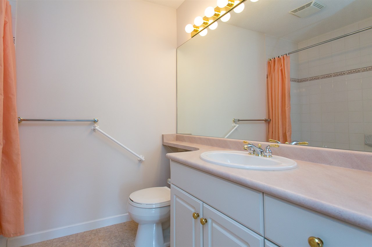 TOP FLOOR CORNER in STRATFORD GARDENS next to lovely Bakerview park. HUGE 1040 sq. ft. 1 bedroom + the den with deep storage closet . Freshly painted thru out. 2 full baths. Sunny western exposure away from traffic noise. This lovely home is immaculate & wheelchair accessible with wide hallways & large roomy kitchen. Cozy gas fireplace. Looks out to gorgeous gardens with a fountain. New roof and balcony in approximately 2011. 1 small pet, cat or dog is welcome. No age restrictions. Walkability "10". Super amenities include an English style "Pub" gathering area, Billiards room, equipped exercise room, 2 guest suites and a workshop. There is a depreciation report. Maintenance includes: hot water heat, hot water and gas for fireplace.