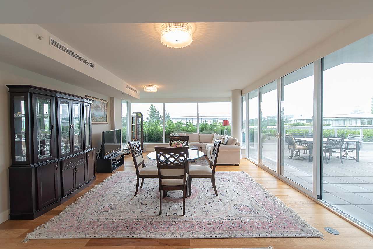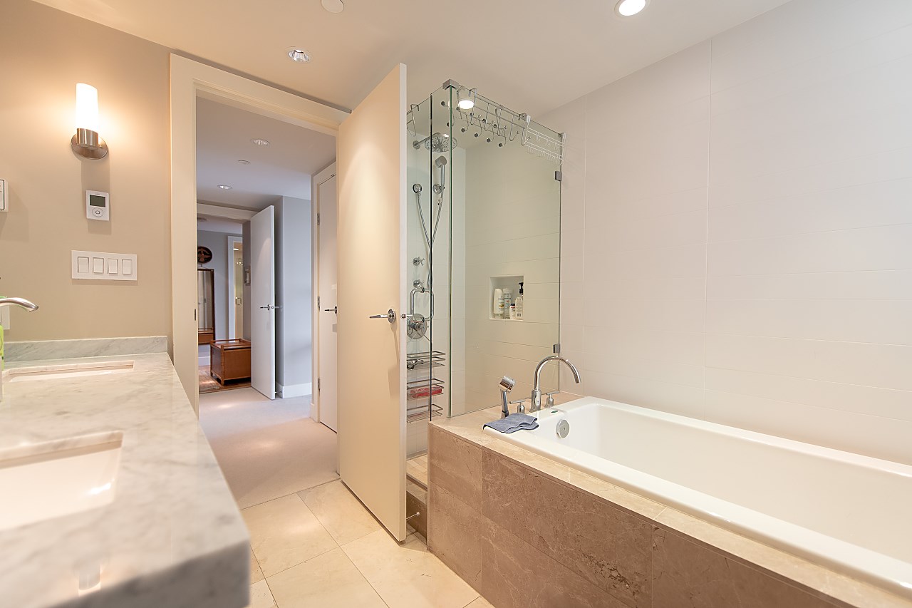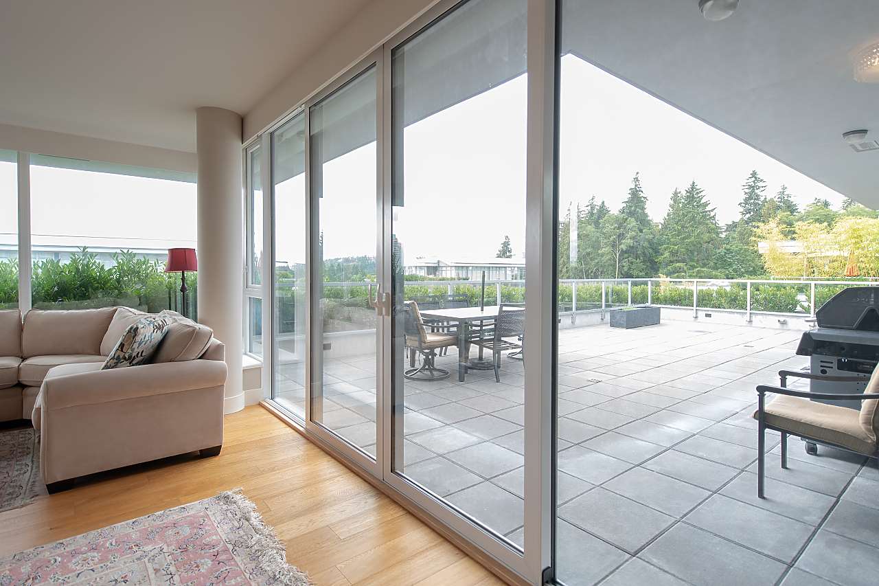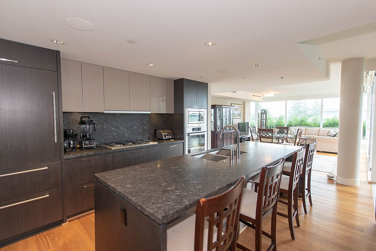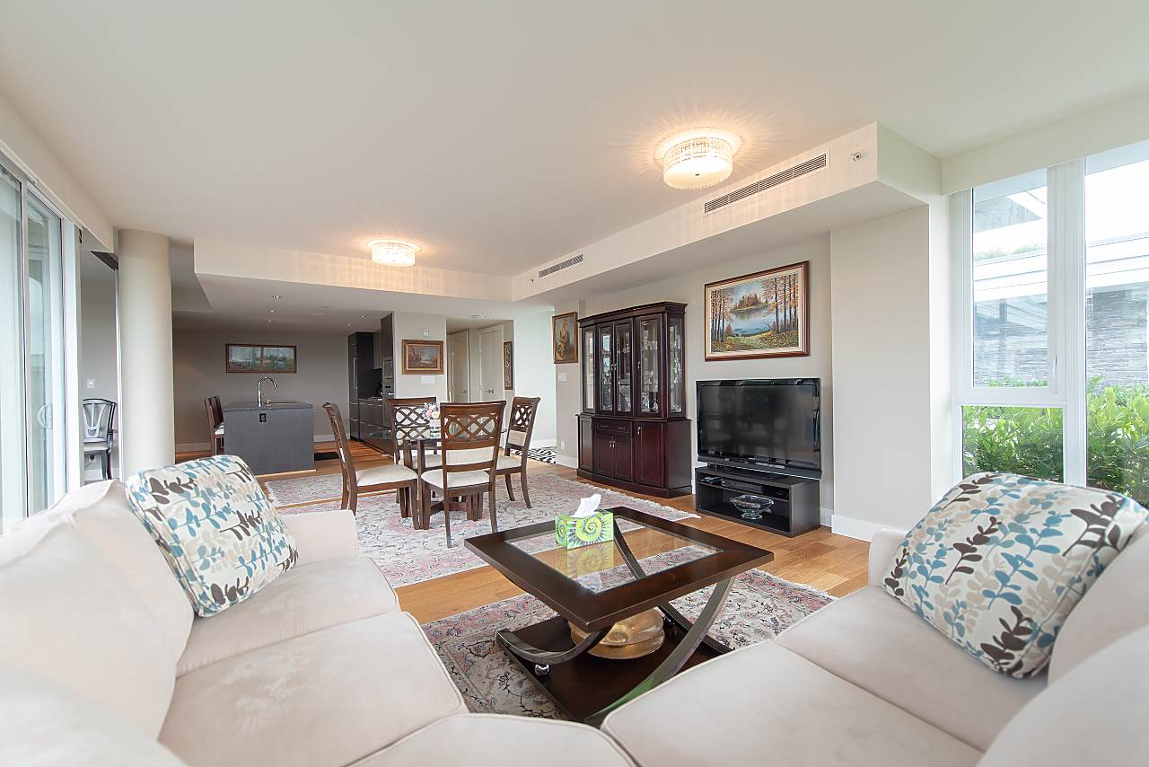 Spectacular - EVELYN Cliffside by Omni. Spacious (2bed/Den/2bath) Walkout onto large private patio and large forested park setting within the heart of the city. Trails by walking distance to Park Royal. This gorgeous 1515 sq. ft. unit boasting 9'6" ceilings, open concept kitchen/dining area with granite counter tops, Sub-Zero fridge, gas stove. Features: automated sound and light controls, gas F/P,A/C, motorized blinds, wide plank engineered h/w floors. 2 car private garage, 2 large storage room. Easy to show !
