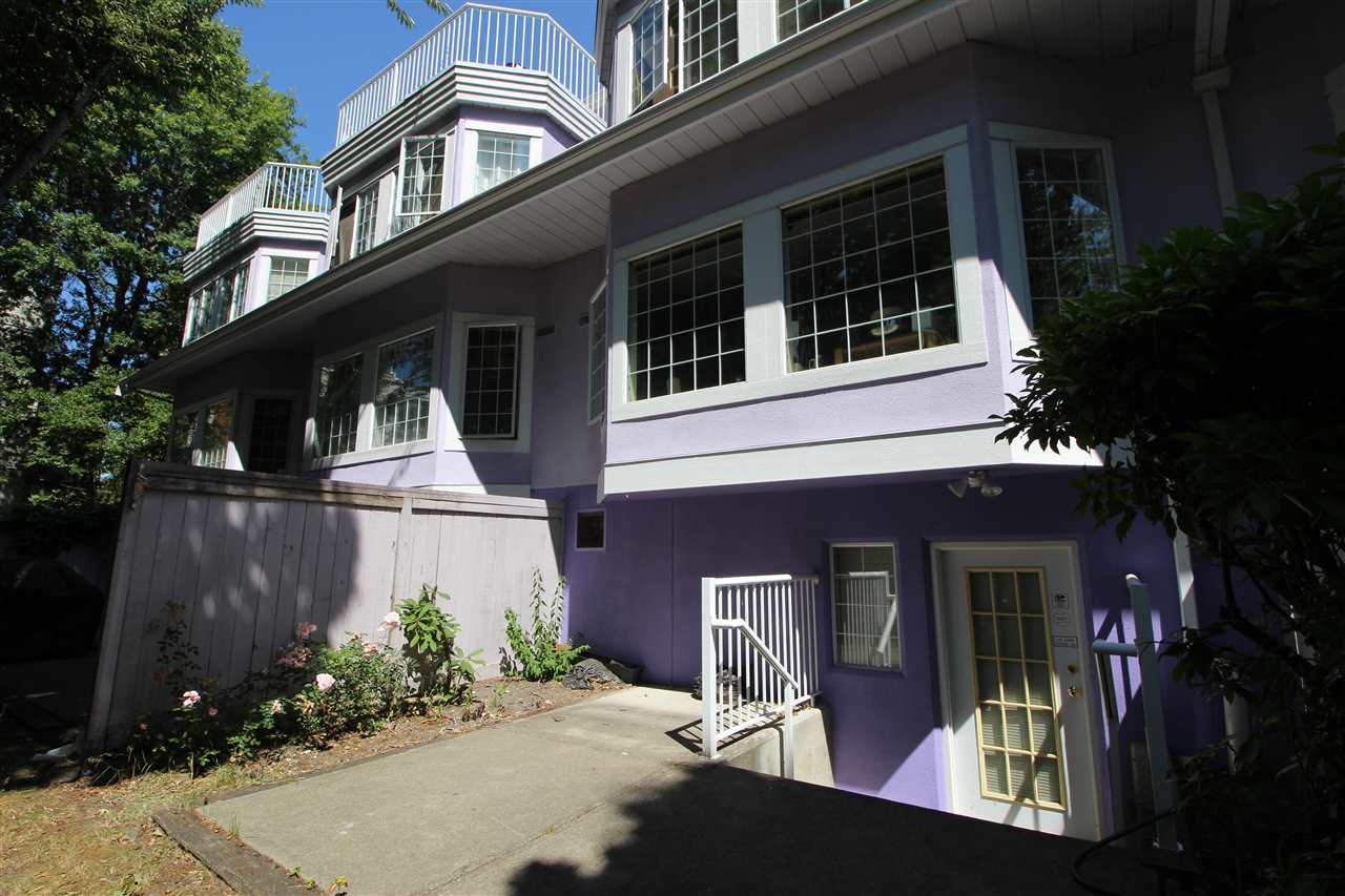 'Caralton Court' Super 3 bedroom & den with view deck townhome large master bedroom spacious floor plan, newly laminated flooring, double attached garage. This complex offers new roof, new balcony, huge storage area on ground floor with laundry. cement foundation and cement on main floor as well.Close to skytrain, shops, major amenities, Currie Elementary & Palmer Secondary within walking distance. Call to see today.