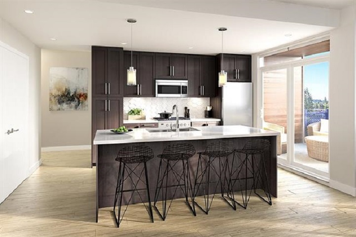 Beautiful and desirable Mill Lake District in Abbotsford! Built by Heinrichs Development, this sold out community offers modern architecture and natural surrounds, inspired by green technology. 2 bed/2 bath CORNER unit with open concept design, brushed oak wide-plank engineered hardwood floors, shaker-style cabinetry, quartz countertops, stainless steel appliances, side by side full-size washer & dryer, central air conditioning, deep-set soaker bathtubs, frameless glass shower with rainfall shower heads, gas connection for barbecue on private covered balcony - all in resort style living by Mill Lake. Completion est. Dec 2018 - March 2019. This is an assignment of contract sale. Comes with 1 parking and 1 storage locker.