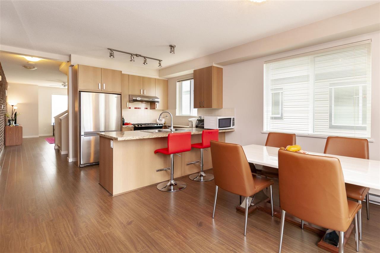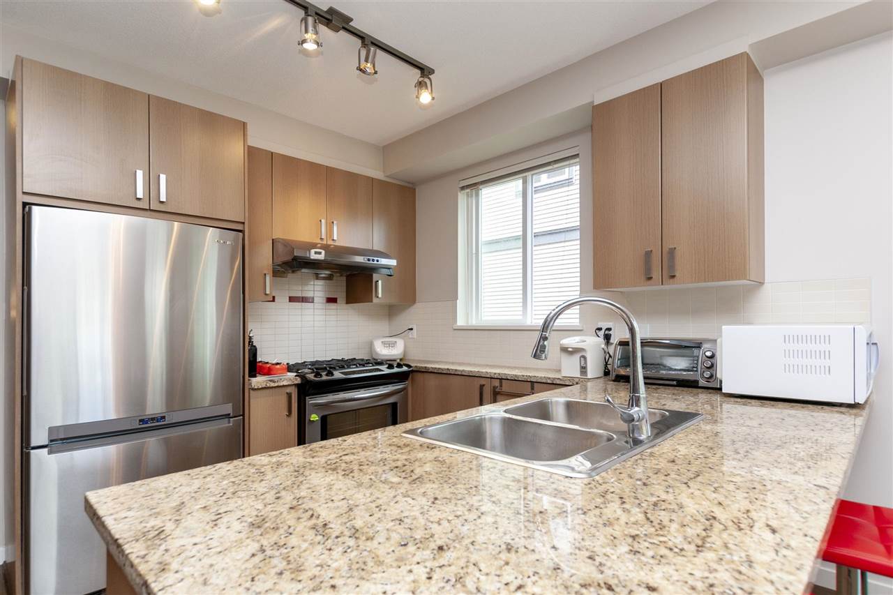 Polygon built 3-bedroom townhouse, end unit, south exposure, additional windows, w/sufficient light very bright and well kept. 2 good size bedroom up and one below. Wood flooring though out living room, kitchen, and dining area. Designer brick wall, gas cooktop, stainless appliance. Walking distance to mall Central at Garden City, Walmart, restaurants, shops, banks, public transits, etc...sits in central & convenient location of Richmond. Tomsett Elementary & MacNeil Secondary. Please call to book your private showing.