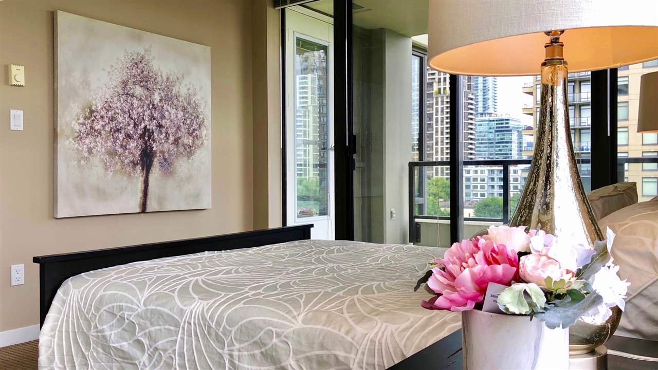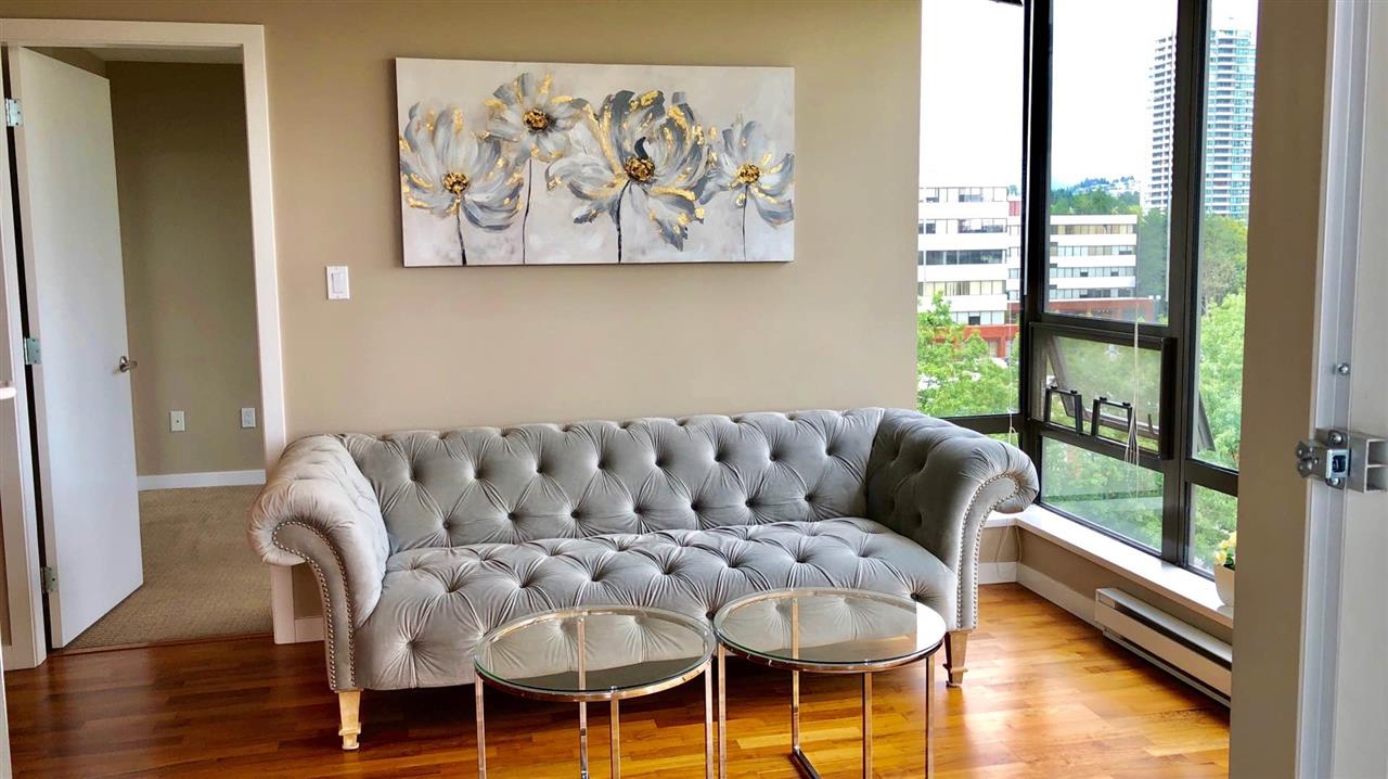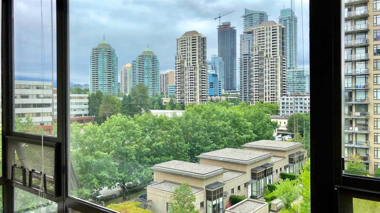 OWNER's PRIDE! Very well maintained 2 bed and 2 bath corner unit in TANDEM 3. It is located only steps away from the Gilmore Skytrain station. This is a bright South-East facing unit, facing away from afternoon sun and skytrain. It's the best corner with view of the city and garden. Featuring granite counter top, stainless steel appliances, and engineered hardwood floor in the living room. Spacious open concept and great layout, with 2 bedrooms located on each side of the living room. Lots of Amenities: clubhouse, roof-top garden & BBQ, steam room/sauna, Jacuzzi and more. Proudly built by Anthem Properties (currently re-developing Station Square Metrotown). Open house Sat Aug 11 , 2-4 pm 2018