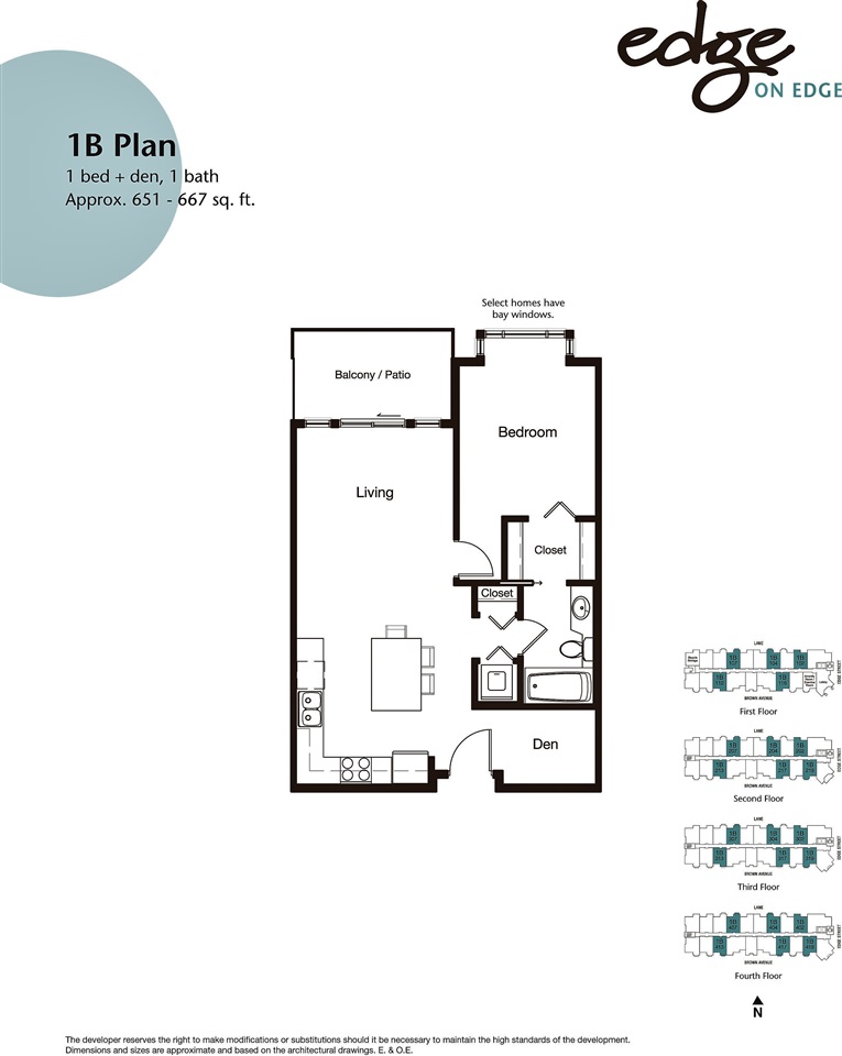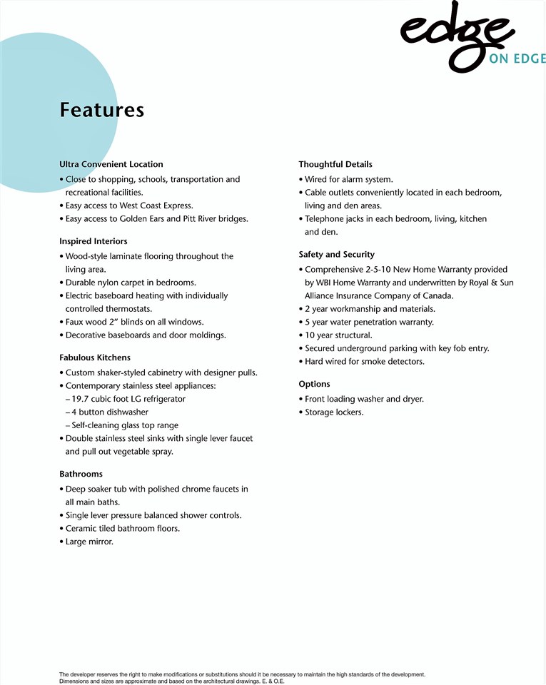 1 bedroom + den condo in the EDGE ON EDGE - Downtown living at its best providing convenience of being within WALKING DISTANCE TO EVERYTHING - shopping (behind Haney Place mall), Restaurants, Library & leisure Centre, The ACT (Arts Centre and Theatre), Farmer's Market during the summer and Bus loop. Has been RENTED BY THE DEVELOPER AS A SALES OFFICE since beginning, and will have uninterrupted use. At end of the tenancy the developer will complete the kitchen with white shaker-styled cabinets, laminate flooring in bedroom, glass door and wall leading to the den and wood closet shelving. Featuring open concept designs with granite counters, undermount sinks, island kitchen, s/s appliance package, in-suite laundry, underground parking and YOUR OWN PRIVATE YARD WITH A GATE & STREET ACCESS.