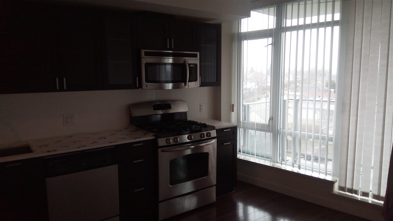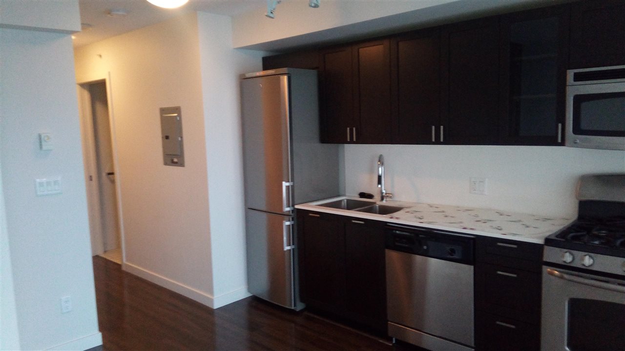 Quality building, Quiet Corner unit. Spacious and functional layout totaling 438 sf. Open kitchen with stainless steel appliances, granite countertop, all laminate flooring, in-suite laundry, good size balcony, one parking and storage locker. Excellent location, step to shopping, banking, transit, restaurant and more. 2/5/10 developer warranty. Be quick, this unit great for the first time buyer or investors.