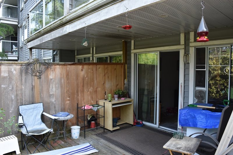 OPPORTUNITY TO OWN INSTEAD OF RENTING!! NO CAR NECESSARY!! Spacious 1 bedroom corner unit close to shopping, recreation, restaurants and the West Coast Express. Features include in suite storage, 1 1/2 year old Hot Water Tank & SUPER SIZED PRIVATE YARD. Ground level into backyard & boasting plenty of privacy and room to entertain with 12 X 6 covered deck, 25 X 13 uncovered plus another 18 X 19. Limited Common Property Area that has potential use as well. Call today to view!!